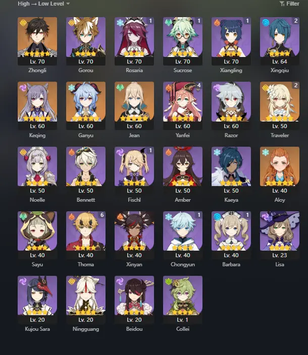 AR52 / NA {6X 5 STAR LEGENDS} Zhongli / Ganyu / Keqing / Jean / Aloy / Traveler / {0-WEAPON}- FULL ACCESS lai062
