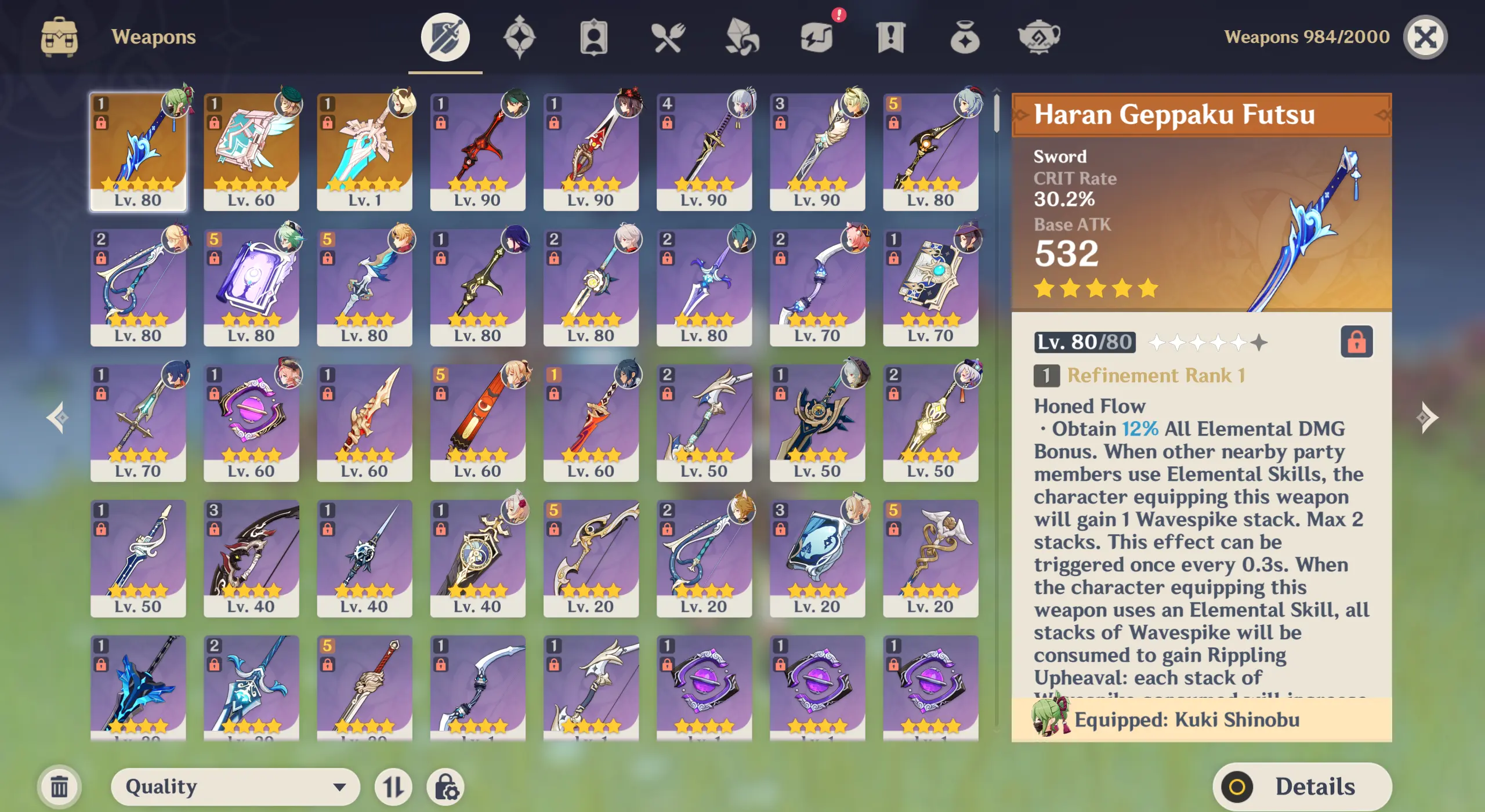 EU AR57 | 5 stars*16 HU TAO | KAZUHA | KAMISATO AYAKA | XIAO | GANYU | RAIDEN SHOGUN | ZHONGLI | JEAN(C2) | KEQING(C1) | QIQI(C1) | TIGHNARI | MONA | DEHYA | HARAN GEPPAKU FUTSU | SKYWARD ATLAS | SKYWARD PRIDE + lots of 4* characters and weapons