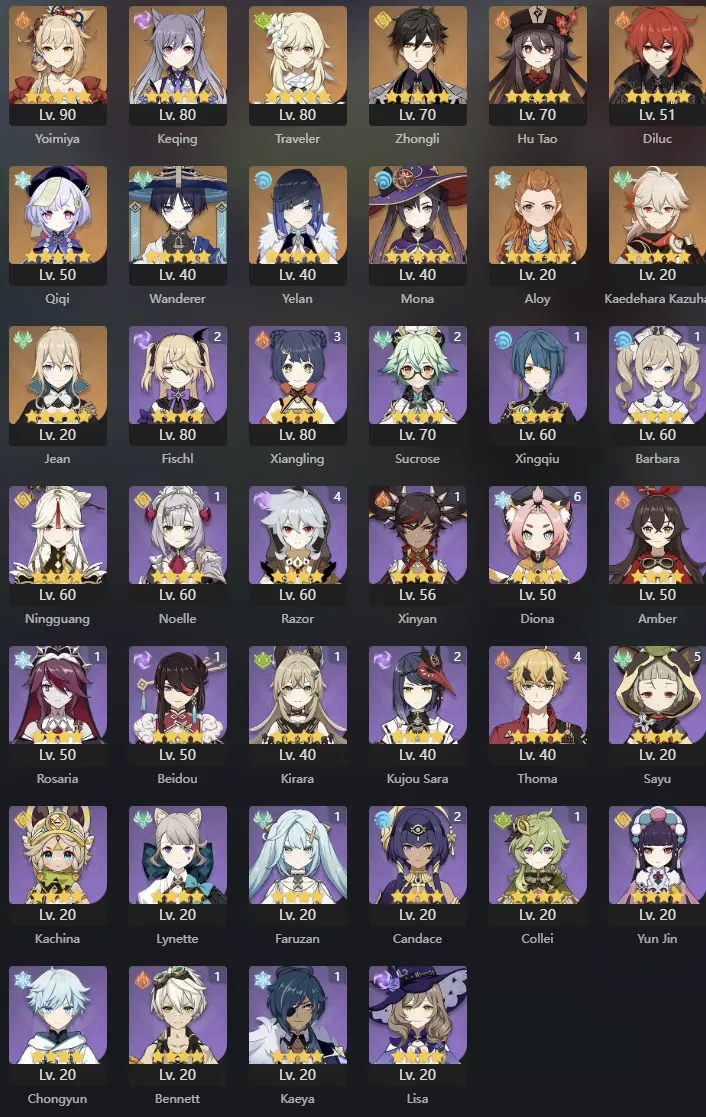 EU | AR 55 | 11 Leg | Yoimiya | Zhongli | Hu Tao | Wanderer | Yelan | Kazuha | Jean | Mona | Qiqi | Diluc | Keqing
