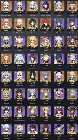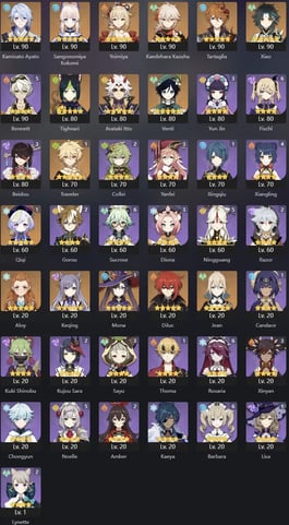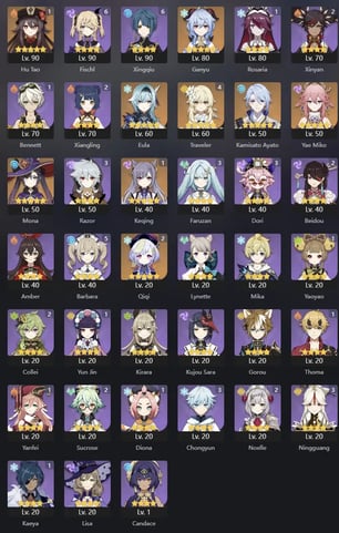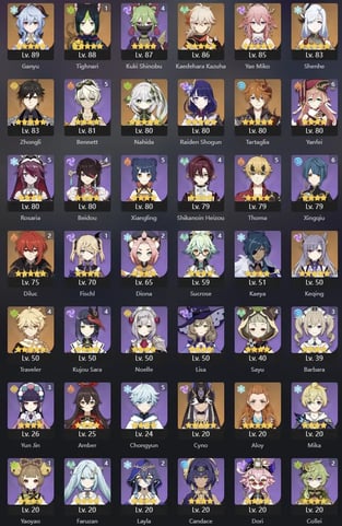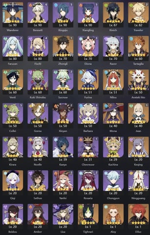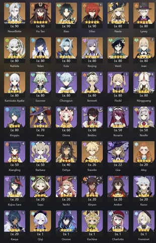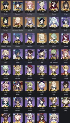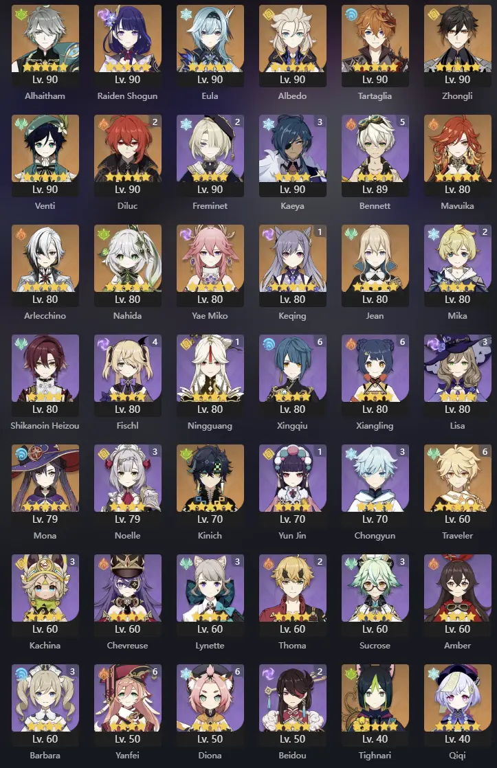 EU | AR 60 | 18 + 8 Leg | Kinich | Tighnari | Mavuika | Arlecchino | Yae Miko | Nahida | Zhongli | Raiden | Venti | Eula | Albedo | Alhaitham | Diluc C2 | Keqing | Tartaglia | Jean | Mona | Qiqi
