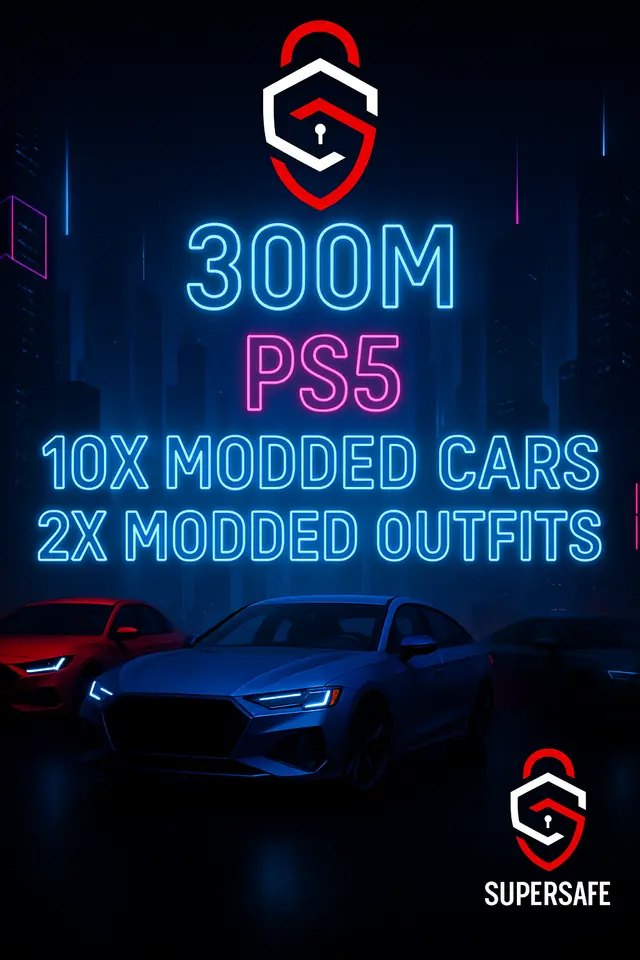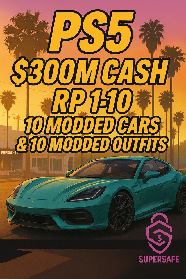 PS5 GTA Online Modded Account – 300M Money Boost (≈40M Cash + 50 Deluxos) | 10 Modded Cars & 2 Modded Outfits | RP 1–10 | Expanded & Enhanced | Instant Delivery | Full Access | #GTAPS5373