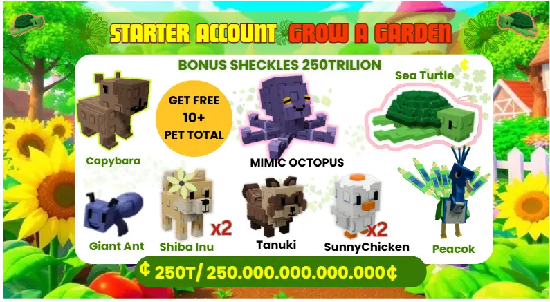 ✨ Starter GAG Account | Mimic Octopush + 10 Pets + 250T Shekcles Bonus | Grow A Garden
