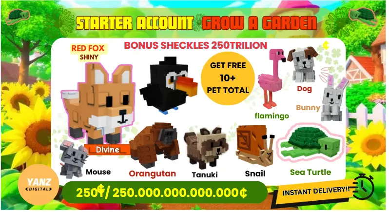 ✨ Starter GAG Account | RedFox, Orangutan, Toucan 10+ Pets + 250T Shekcles | Grow A Garden