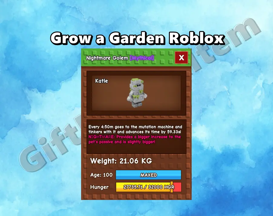 Mutation Nightmare Golem 20Kg ++ Age 100 Grow a Garden