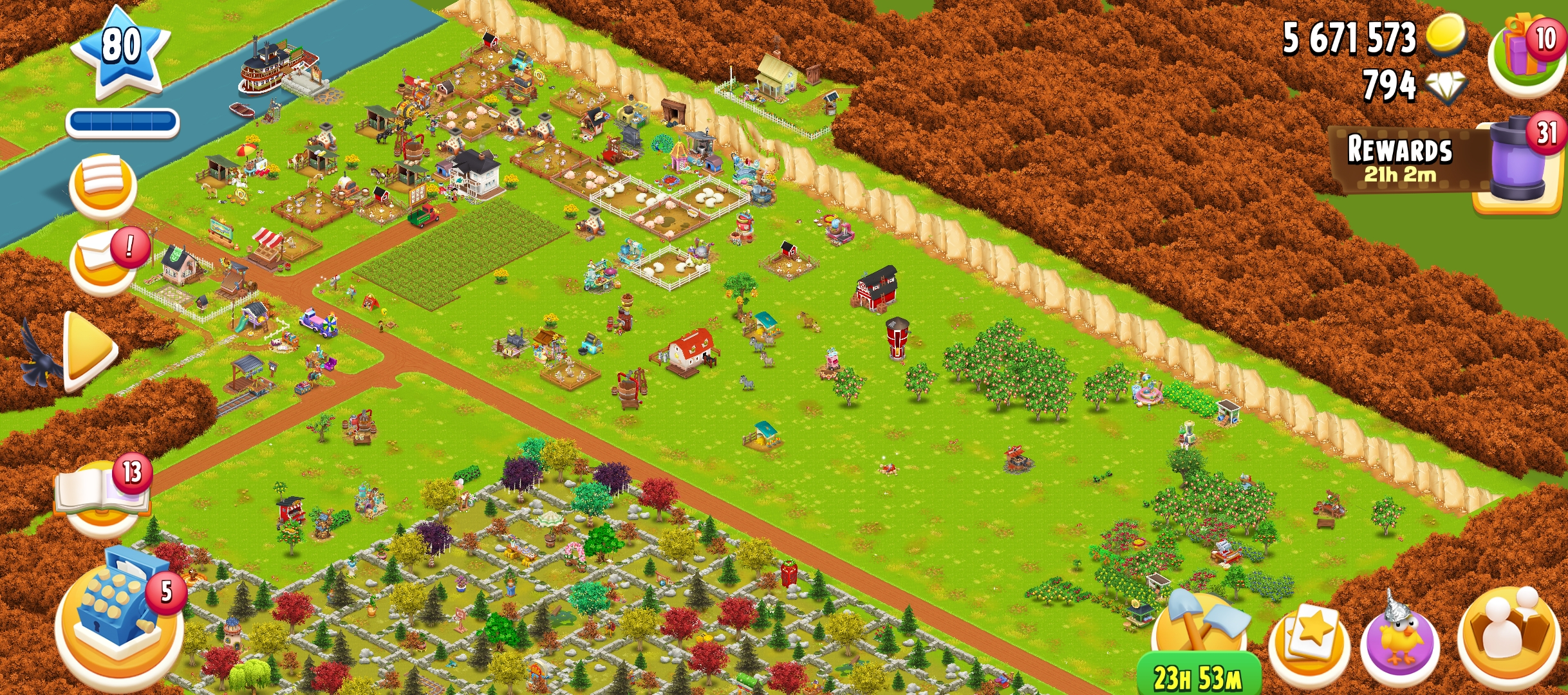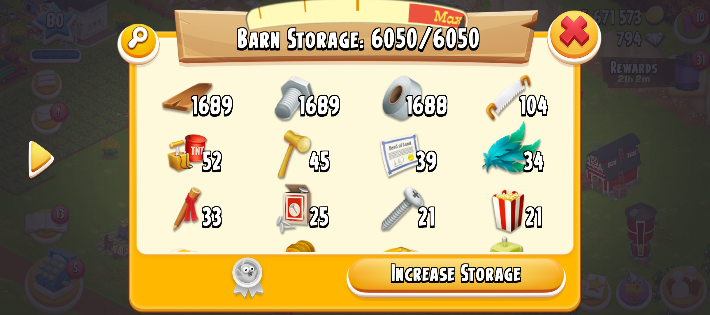 80 level | Barn Storage 6050 | Silo Storage 2100 | 5.5M Coin | 794 Gems | Android & IOS