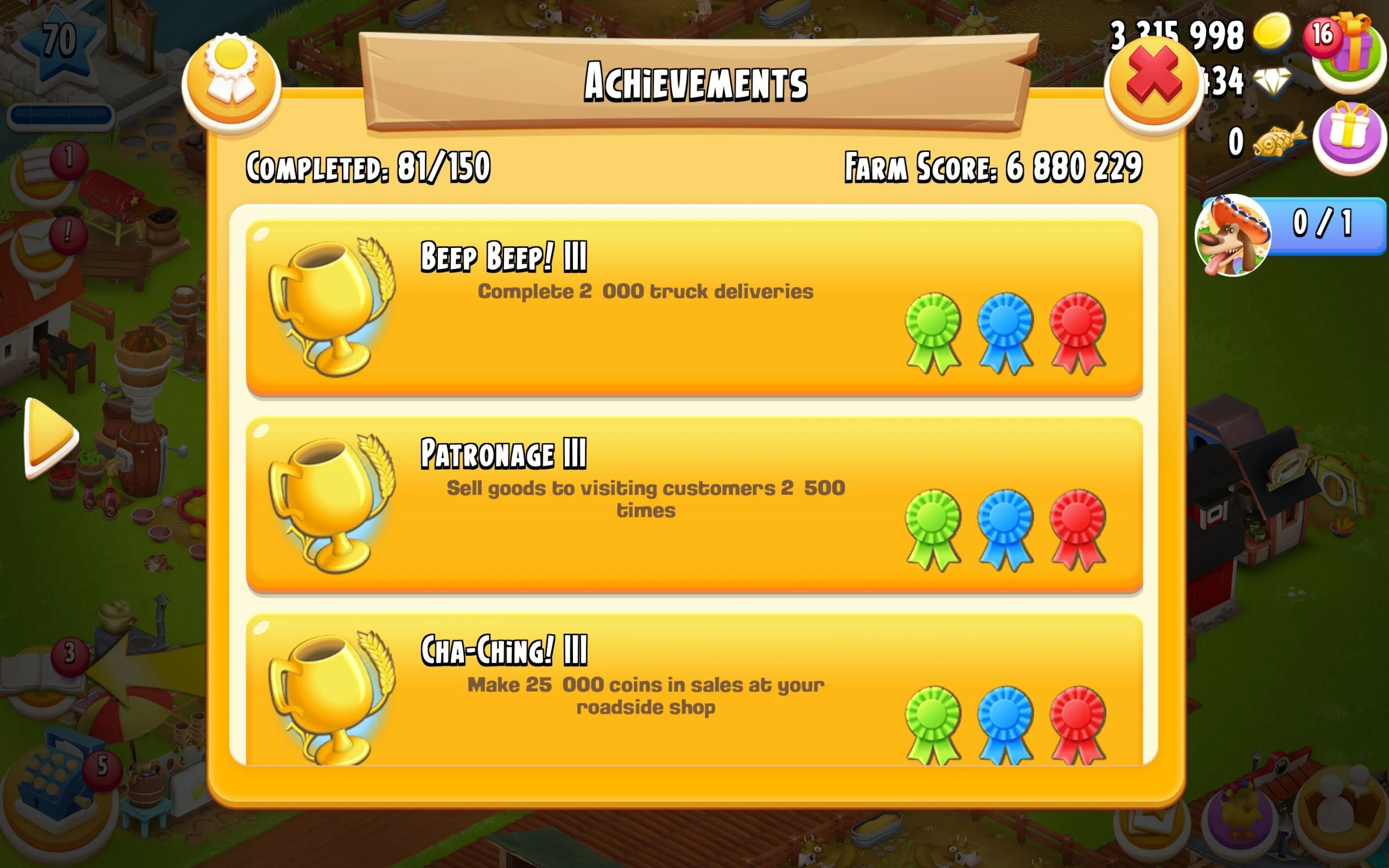 ✨️ CHEAPEST LEVEL 70 HAY DAY FARM 🌾 3315998 COINS🪙 3006/3000 BARN STORAGE💪 941/1000 SILO STORAGE🎯 434 GEMS💎 SUPPORTS BOTH iOS&Android✅️ INSTANT DELIVERY 🚚