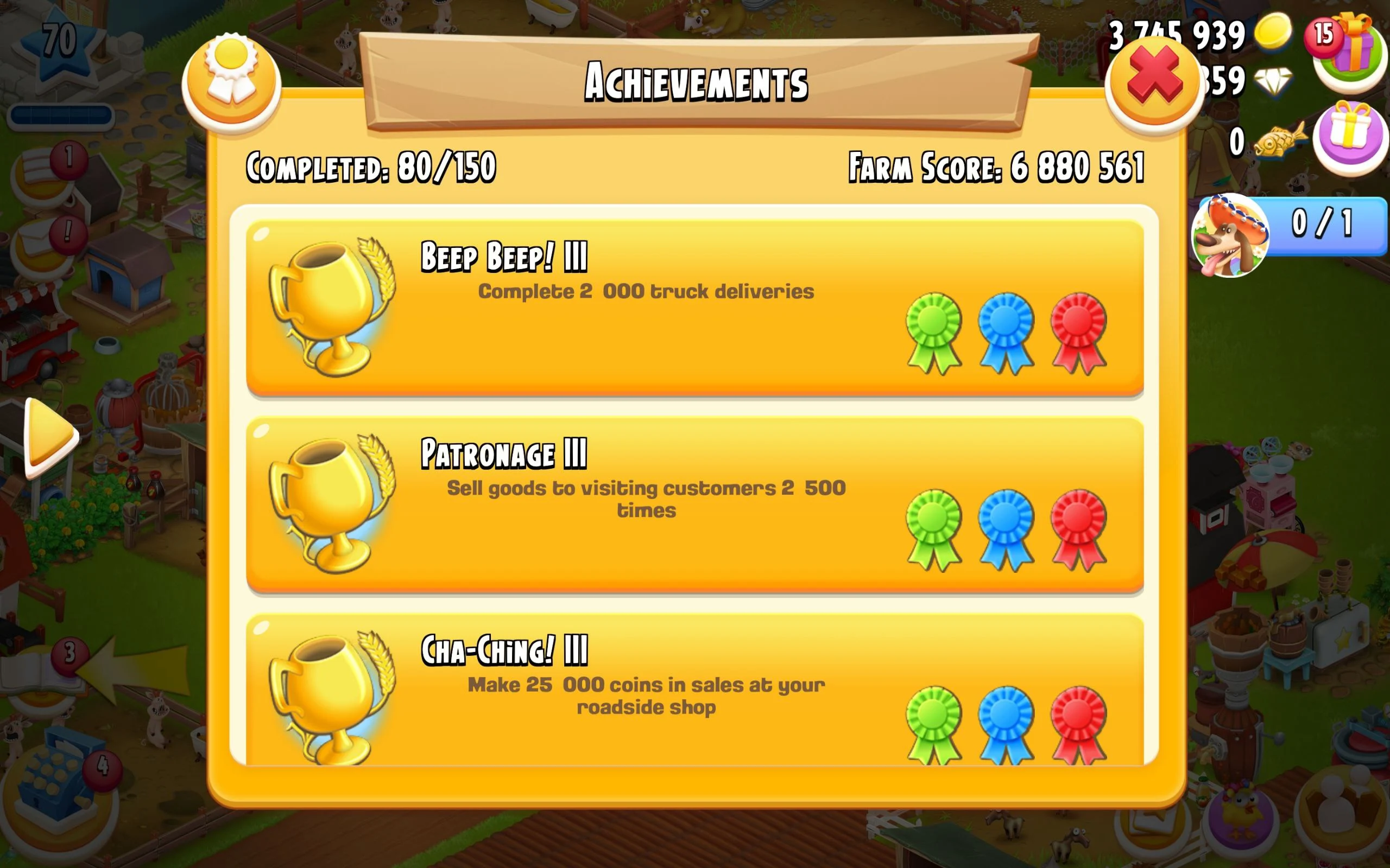 ✨️ CHEAPEST LEVEL 70 HAY DAY FARM 🌾 3745939 COINS🪙 3006/3000 BARN STORAGE💪 941/1000 SILO STORAGE🎯 359 GEMS💎 SUPPORTS BOTH iOS&Android✅️ INSTANT DELIVERY 🚚