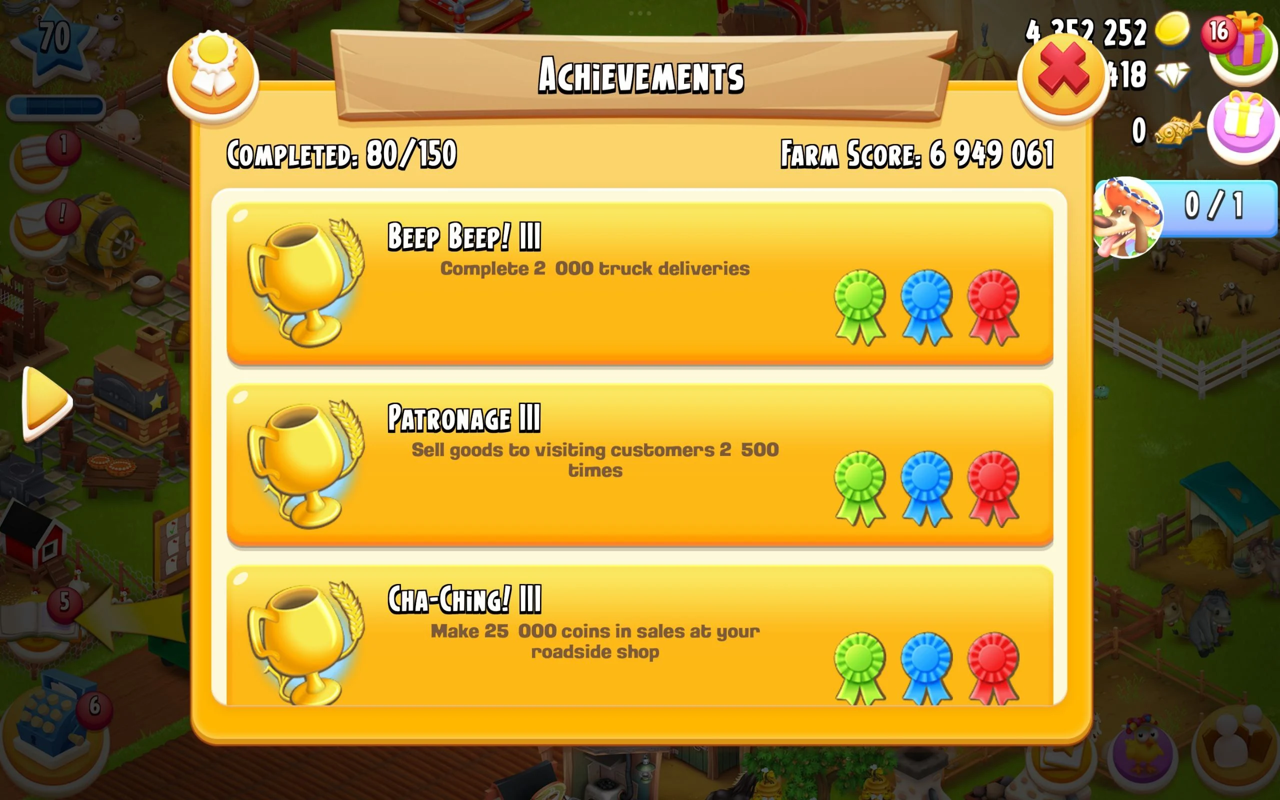 ✨️ CHEAPEST LEVEL 70 HAY DAY FARM 🌾 4352252 COINS🪙 3052/3050 BARN STORAGE💪 816/1050 SILO STORAGE🎯 418 GEMS💎 SUPPORTS BOTH iOS&Android✅️ INSTANT DELIVERY 🚚