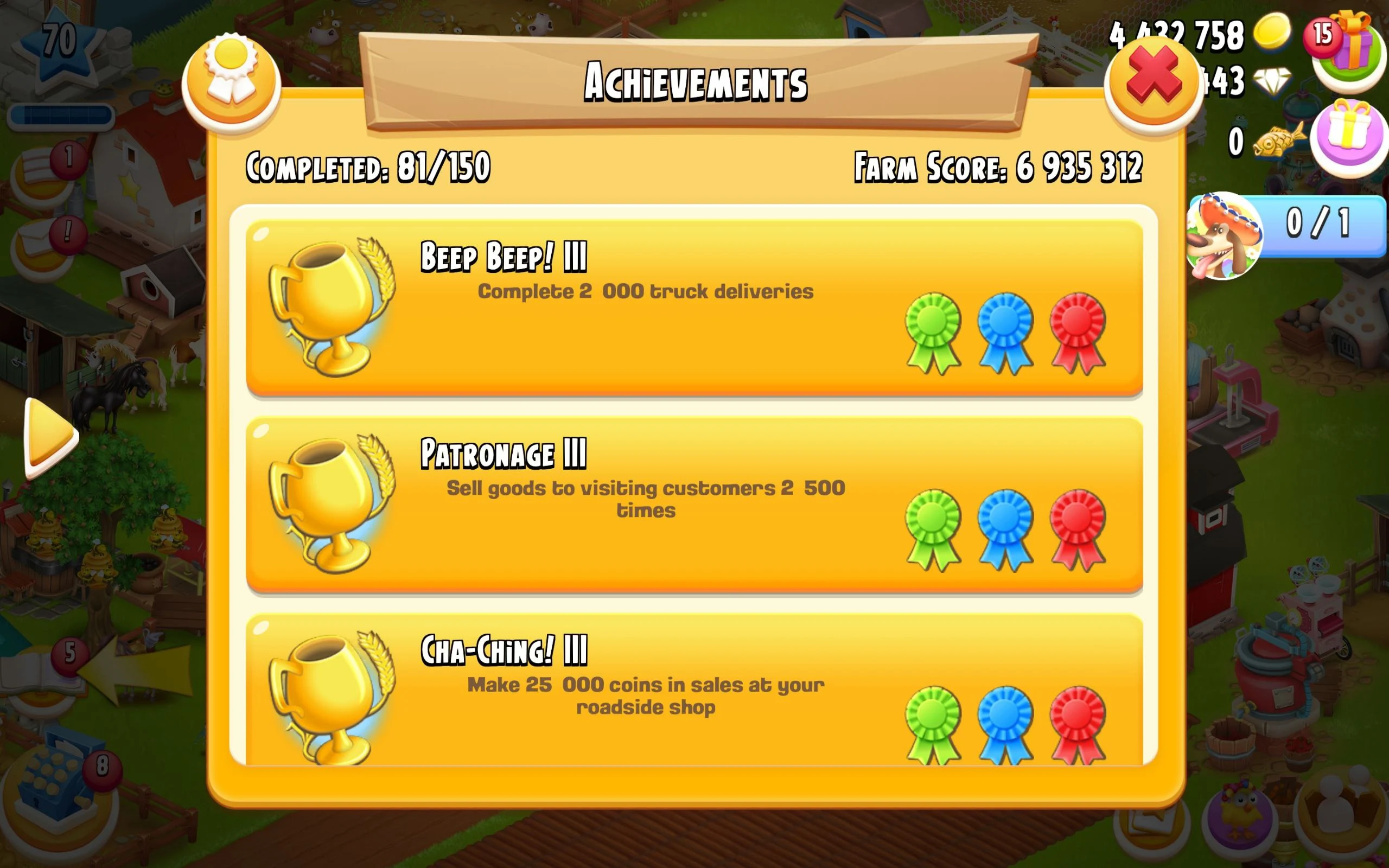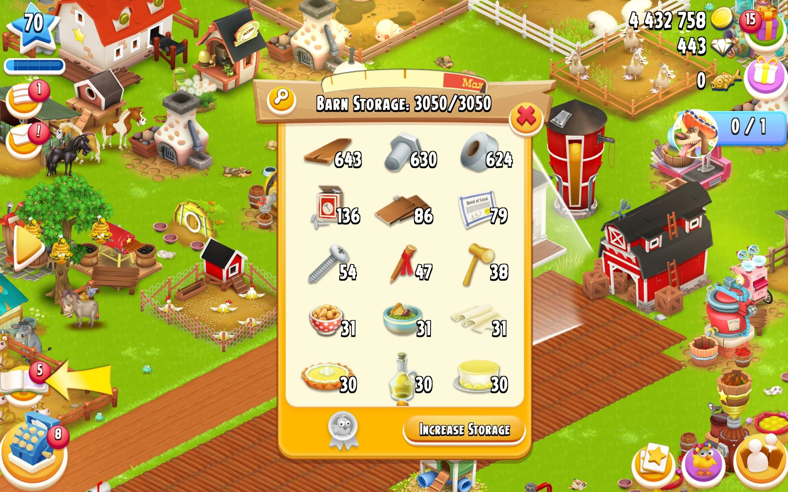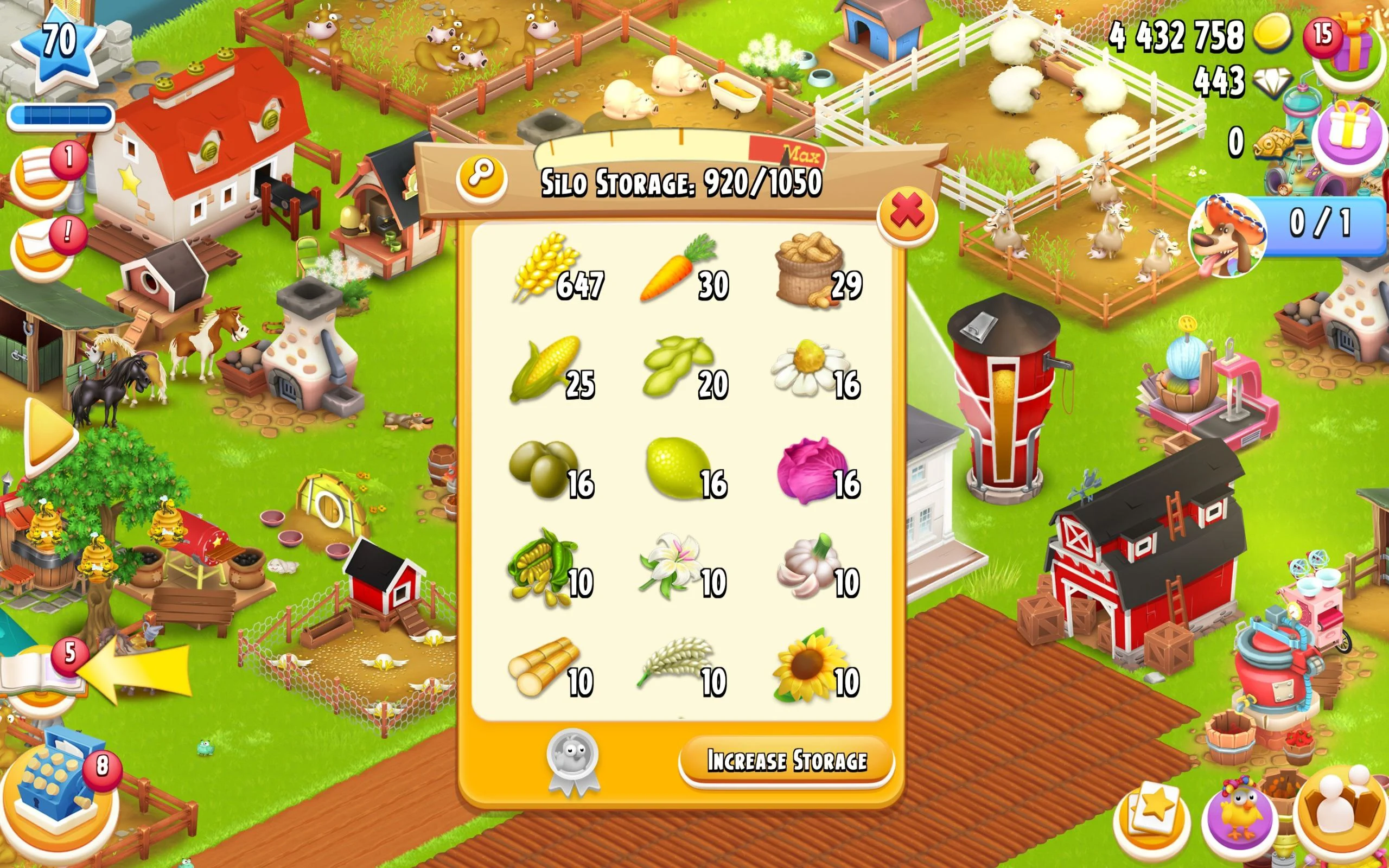 ✨️ CHEAPEST LEVEL 70 HAY DAY FARM 🌾 4432758 COINS🪙 3050/3050 BARN STORAGE💪 920/1050 SILO STORAGE🎯 443 GEMS💎 6935312 FARM SCORE🌟 SUPPORTS BOTH iOS&Android✅️ INSTANT DELIVERY 🚚
