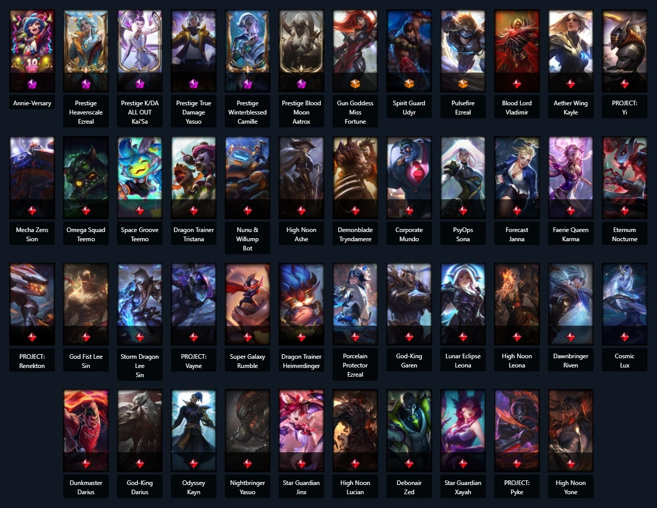 Emerald 4┃357 skins┃171 Champs┃(6 Mythic) Prestige Winterblessed Camille Prestige Heavenscale Ezreal Prestige Blood Moon Aatrox Prestige K/DA ALL OUT Kai'Sa Prestige True Damage Yasuo God Fist Lee Sin Nightbringer Yasuo