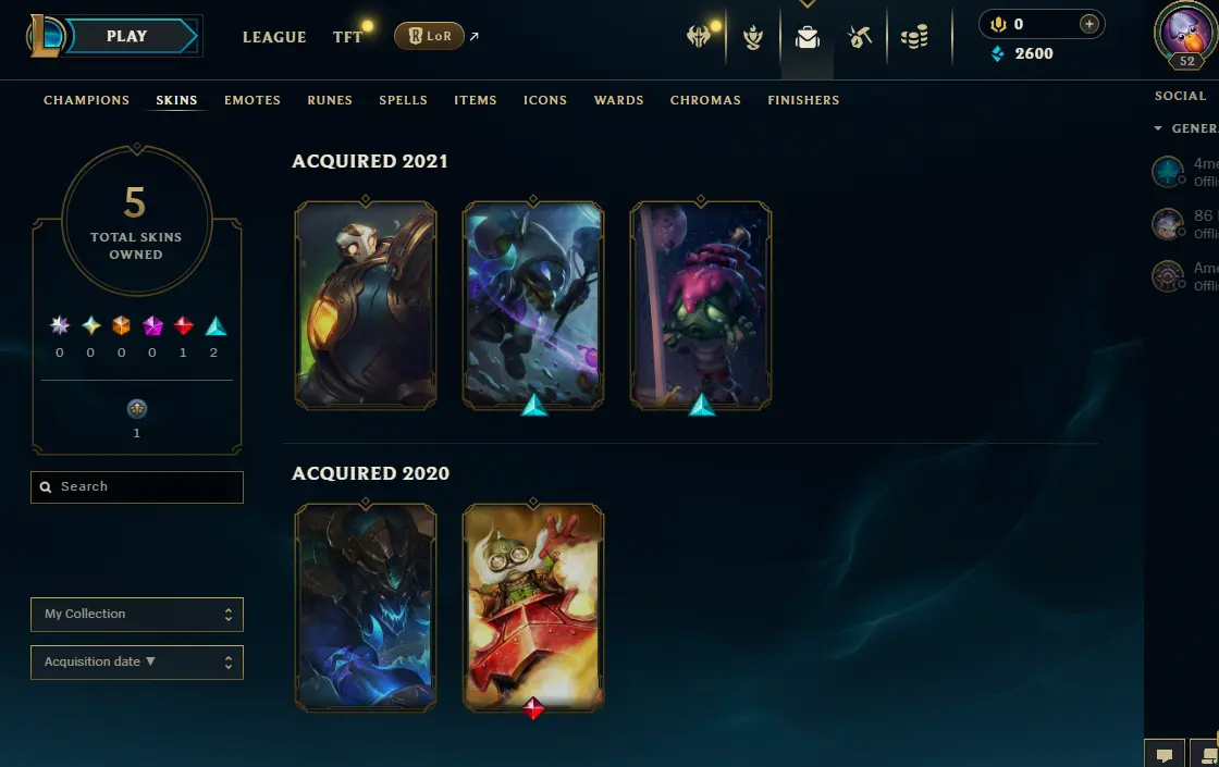 [ EUW ] -52 LEVEL âž± UNRANKED âž± 5 SKINS [ 2600 BE ,0 RP ] âž± HONOR LVL 2 âž± 43 CHAMP