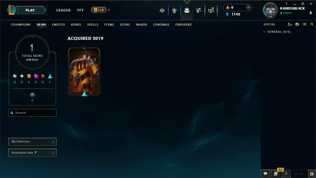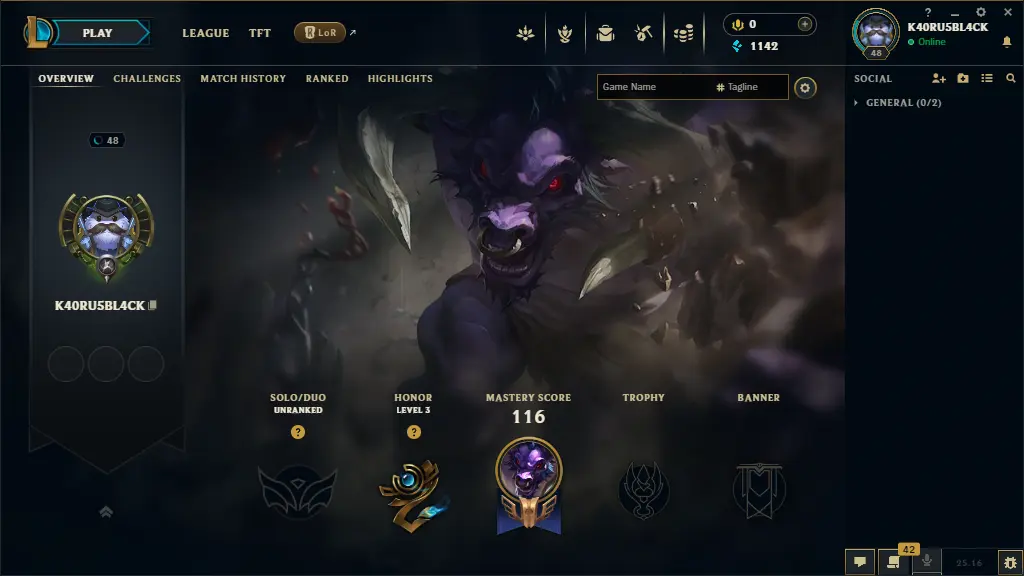 【LAN】– Level 48 🎮 Unranked 🏅 – 1 Skin 🎨 [1,142 BE 💎 | 0 RP 🔥] – Honor 3 🌟 – 30 Champs ⚔️