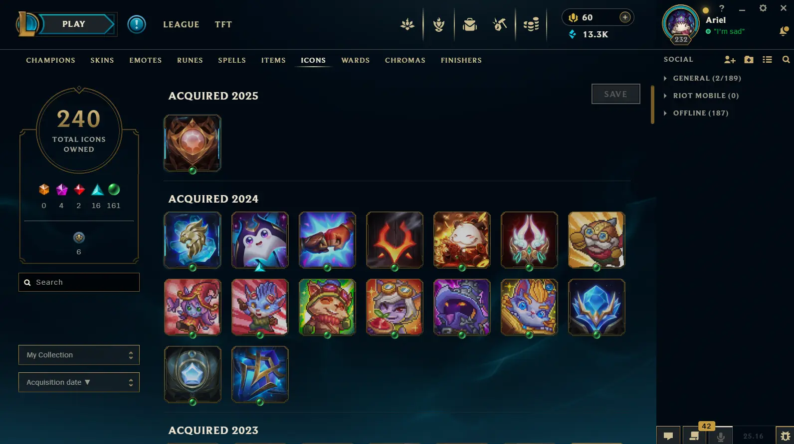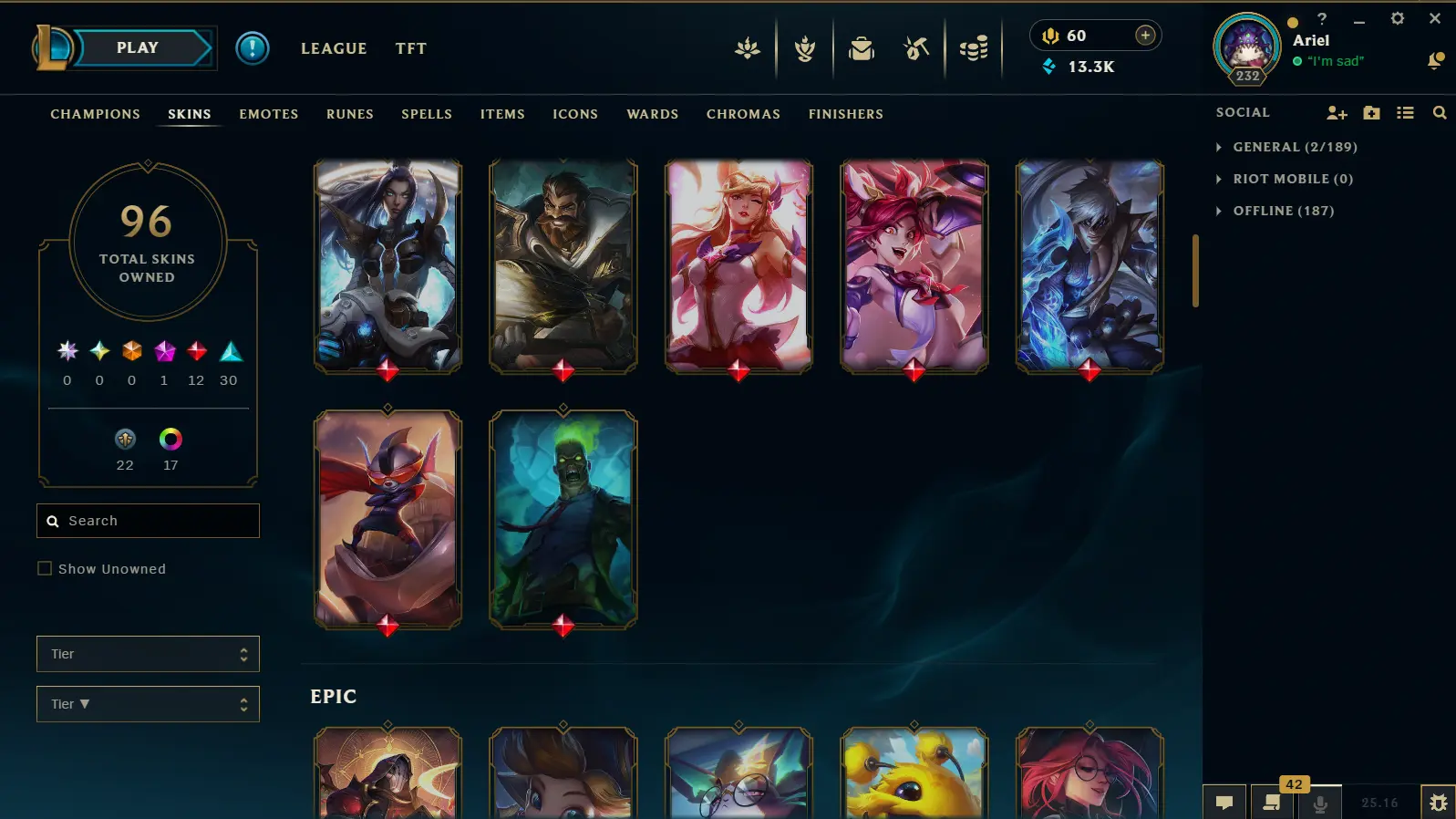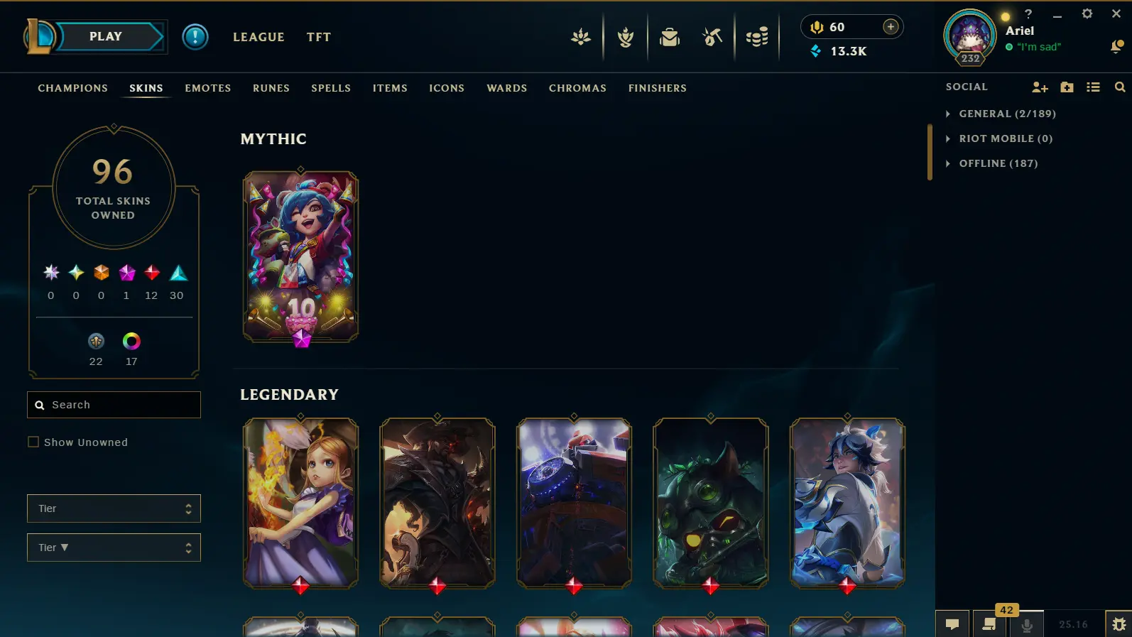 ME🔥 117 Skins【 1 Mythic 12 Legendry】🐠 133 Champions 🍼 240 Icons 🧵 13300 BE ✨ Level 232 🏐 Unranked⸱ 🧀 Email Access 🔥 Instant Delivery #61s12sEU