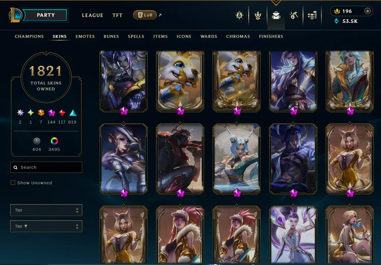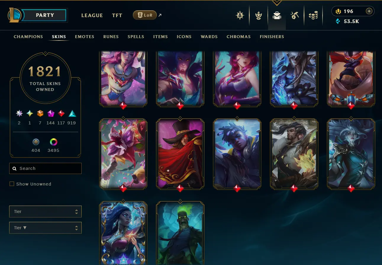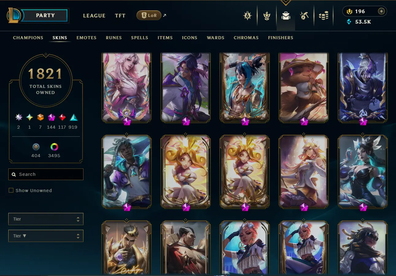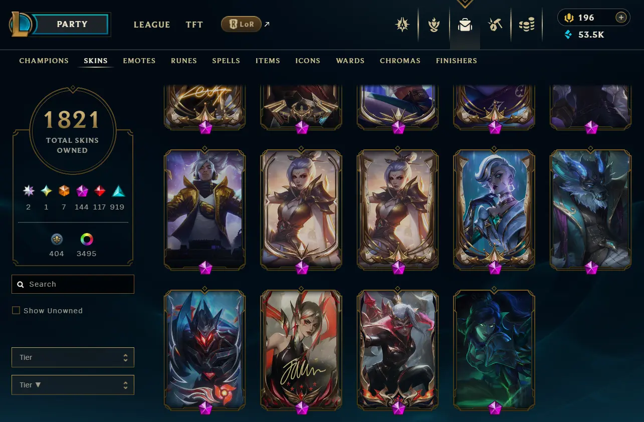 🌟 [ NA ] 1821 Skins 💎 + Radiant Serpent Sett + Immortalized Legend Ahri + All PAX Skins 🎫 + All Rare Skins (Rusty, Black Alistar, etc) + Gacha 💫 (MF, Jhin, Darius, Zed, Lee Sin) + Victorious J4 & Janna 🏆 + 3525 Chromas 🧿 + Original Email 📧