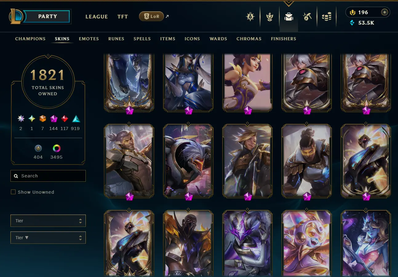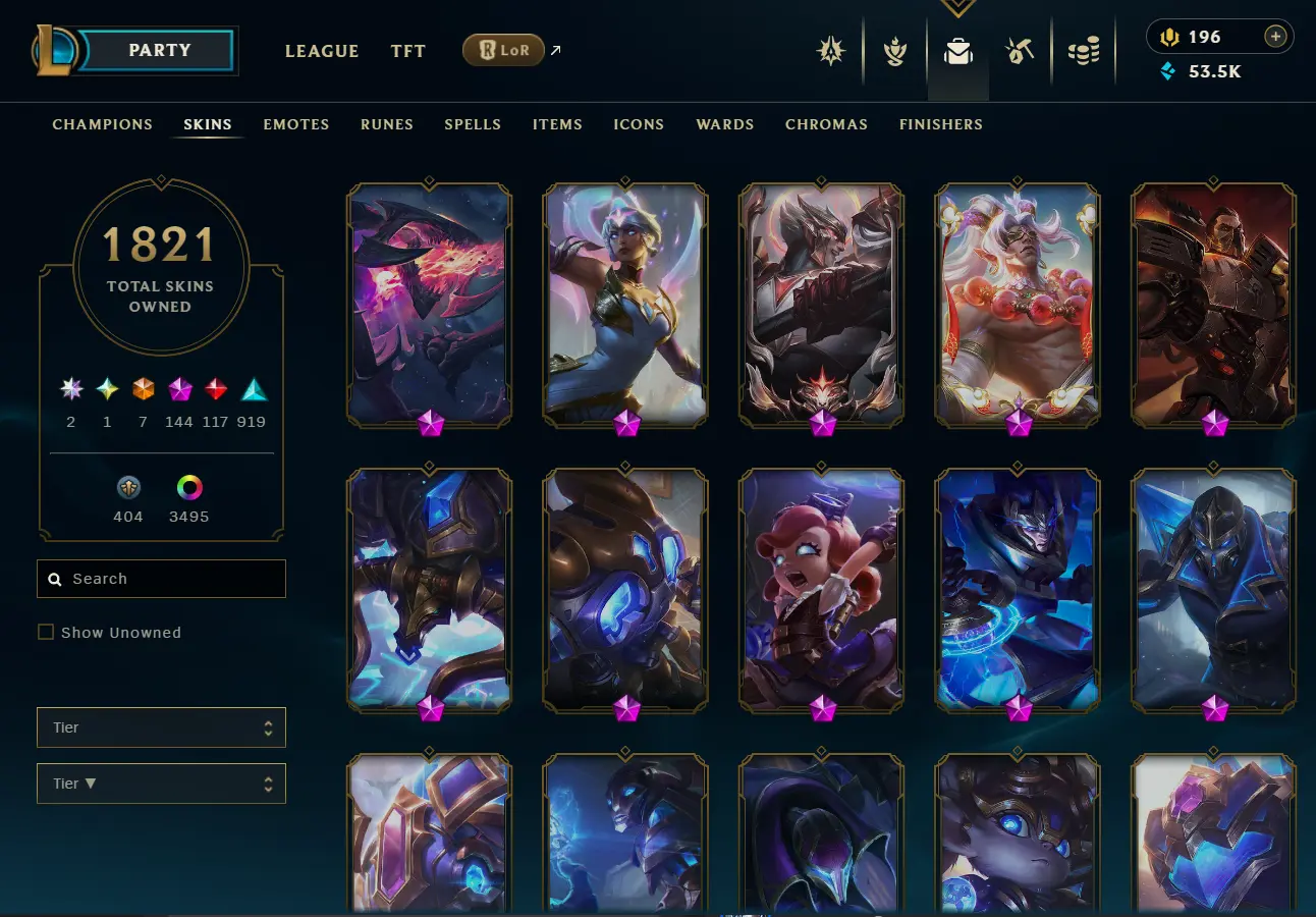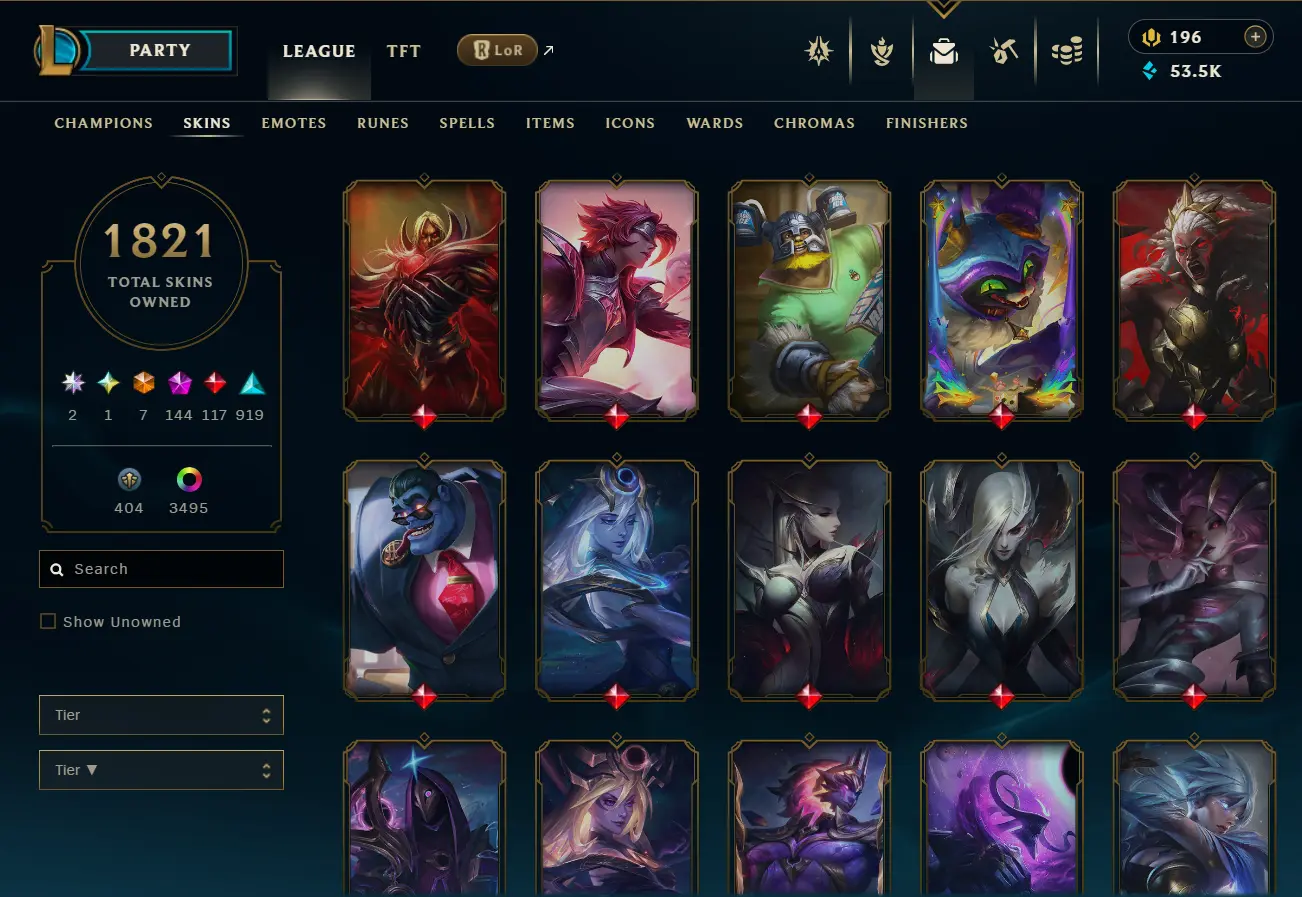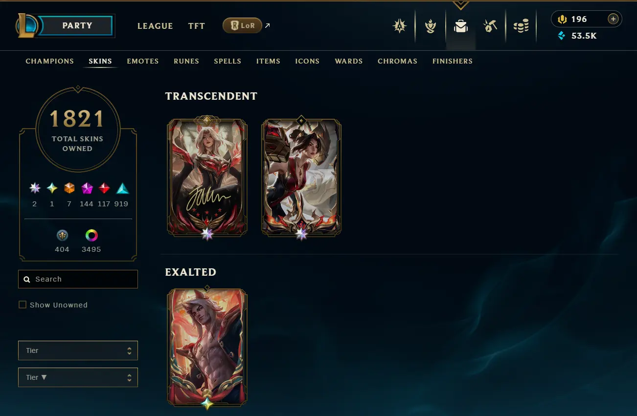 🌟 [ NA ] 1821 Skins 💎 + Radiant Serpent Sett + Immortalized Legend Ahri + All PAX Skins 🎫 + All Rare Skins (Rusty, Black Alistar, etc) + Gacha 💫 (MF, Jhin, Darius, Zed, Lee Sin) + Victorious J4 & Janna 🏆 + 3525 Chromas 🧿 + Original Email 📧