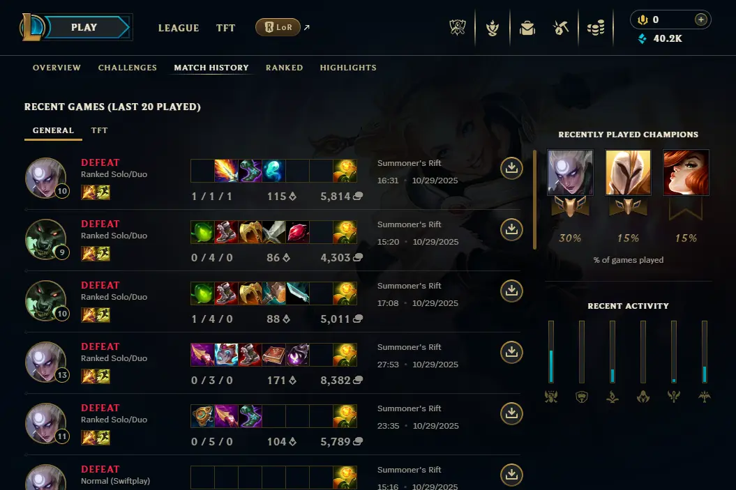 🪽[OCE] 👾 | IRON iv {0 win- 5 L}| 0Lp-20 untouched loot 's 22 Champs 🔥😎 hand-deranked | unverified email | Iron iv MMR A452