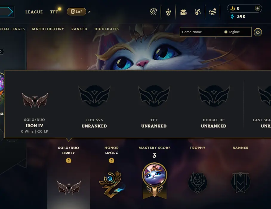 Top seller[OCE] ⭐ | IRON 4 {0 win- 5 L}| 0Lp-20 untouched loot 's 22 Champs 🔥😎 hand-deranked | unverified email | Iron iv MMR A452