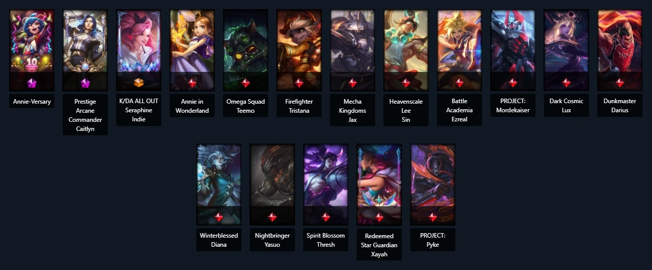 UnRanked┃139 skins┃171 Champs┃(2 Mythic) Prestige Arcane Commander Caitlyn Nightbringer Yasuo PROJECT: Mordekaiser Dunkmaster Darius Spirit Blossom Thresh Heavenscale Lee Sin Firefighter Tristana
