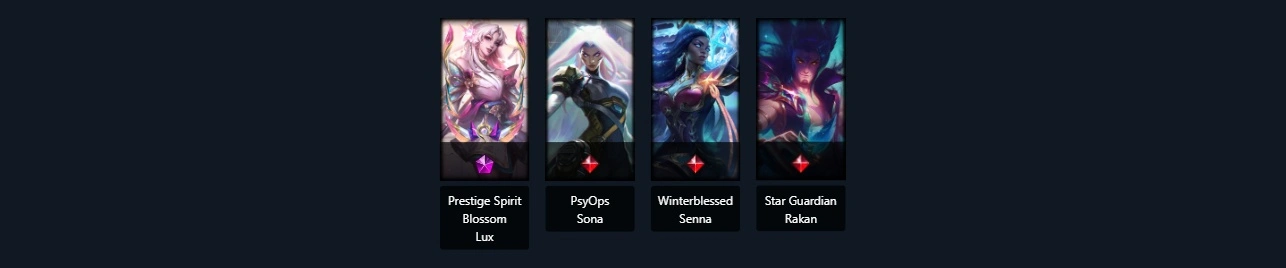 UnRanked┃19 skins┃75 Champs┃(1 Prestige) Prestige Spirit Blossom Lux Winterblessed Senna Star Guardian Rakan PsyOps Sona Elderwood Veigar Pulsefire Thresh Blackfrost Vel'Koz