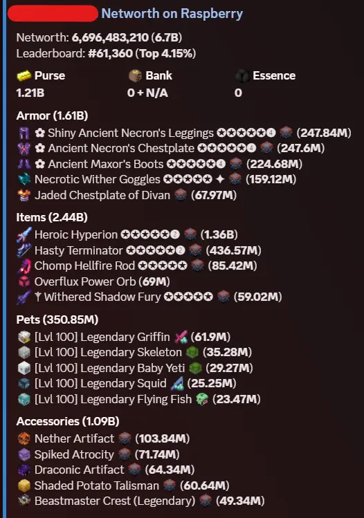 PROFILE⭐6.7B Networth | 1.2B Purse | 869 MP | 26 Minion Slots | 42 Collections Maxed❗Hyperion + Terminator