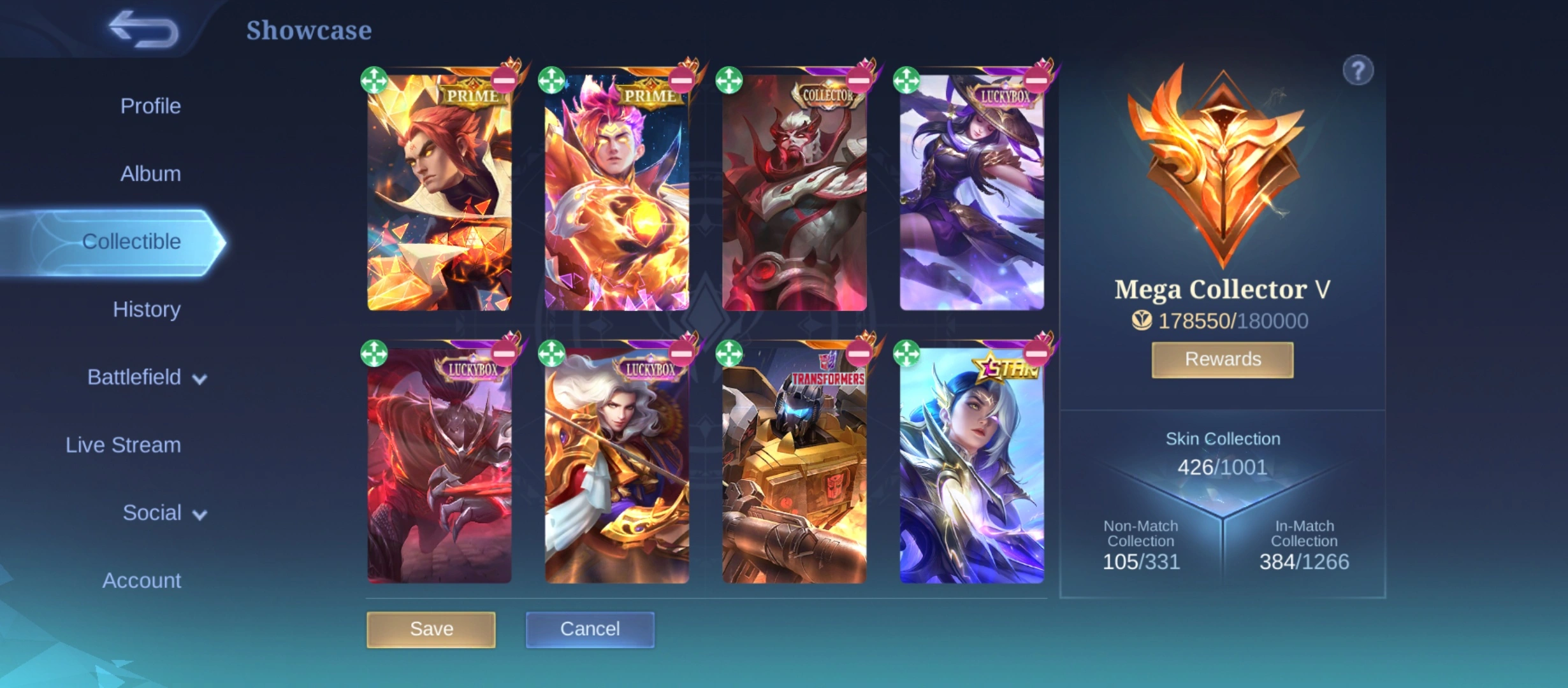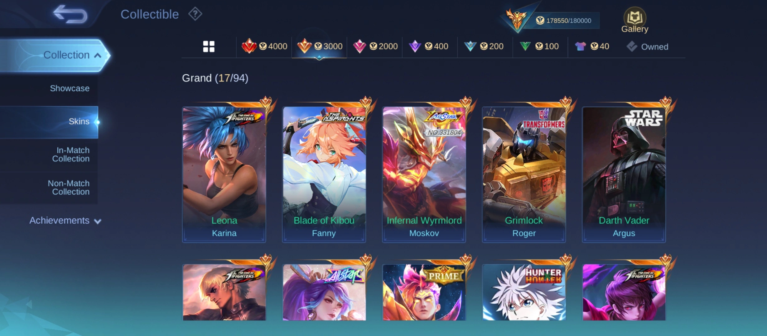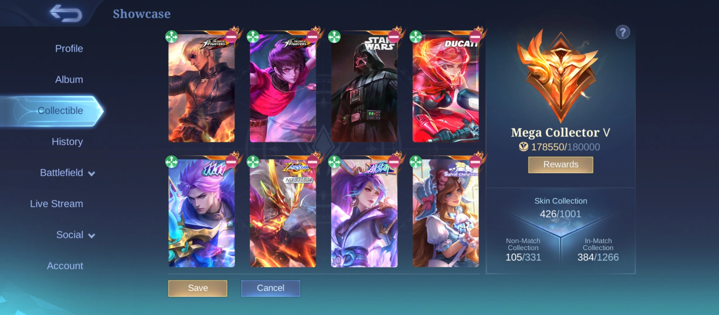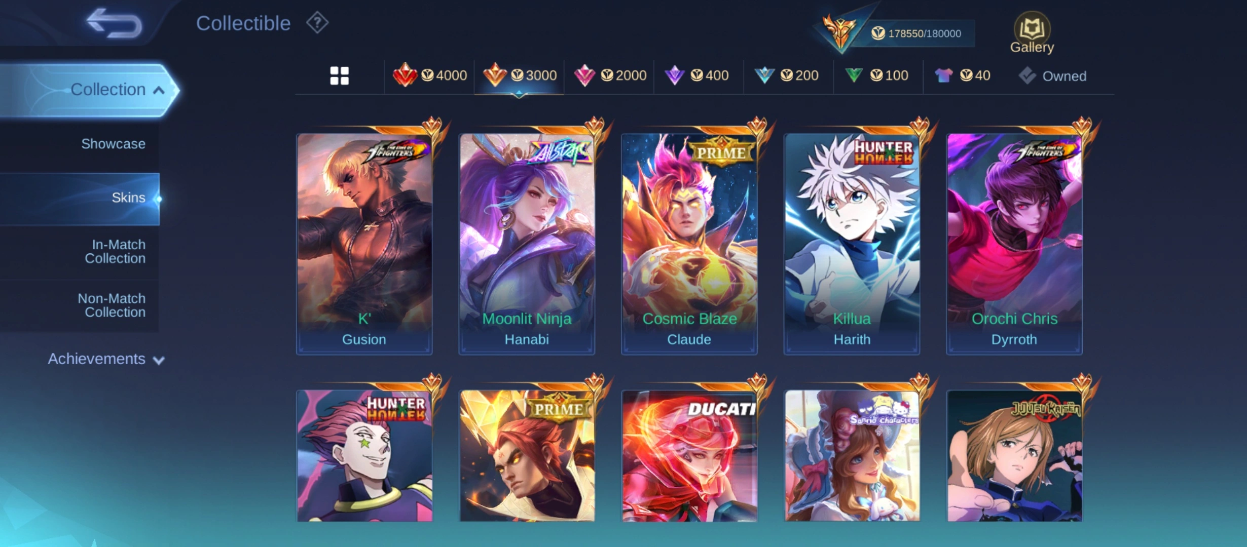 GG806|Lvl 69|MEGA COLLECTOR 5|61% HIGH WR|426 SKIN|2 LEGEND|2 JJK(MEGUMI,NOBARA)|2 HXH|FANNY ASPIRANTS|2 ALLSTAR|DARTH STARWARS|NOLAN 11.11|BENED DUCATI
