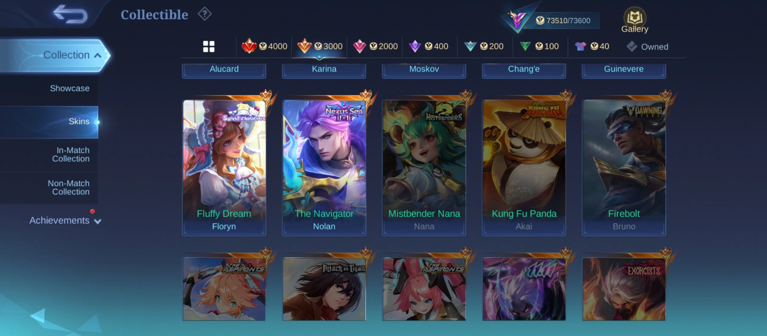 GG922|Lvl 49|RENOWNED CC 2|210 SKIN|ALUCARD STARWARS|CHANG'E ASPIRANTS|MOSKOV ALLSTAR INFERNAL|NOLAN 11.112|2 KOF|FLORYN SANRIO|KAGURA CLOUDS|LEGEND 3