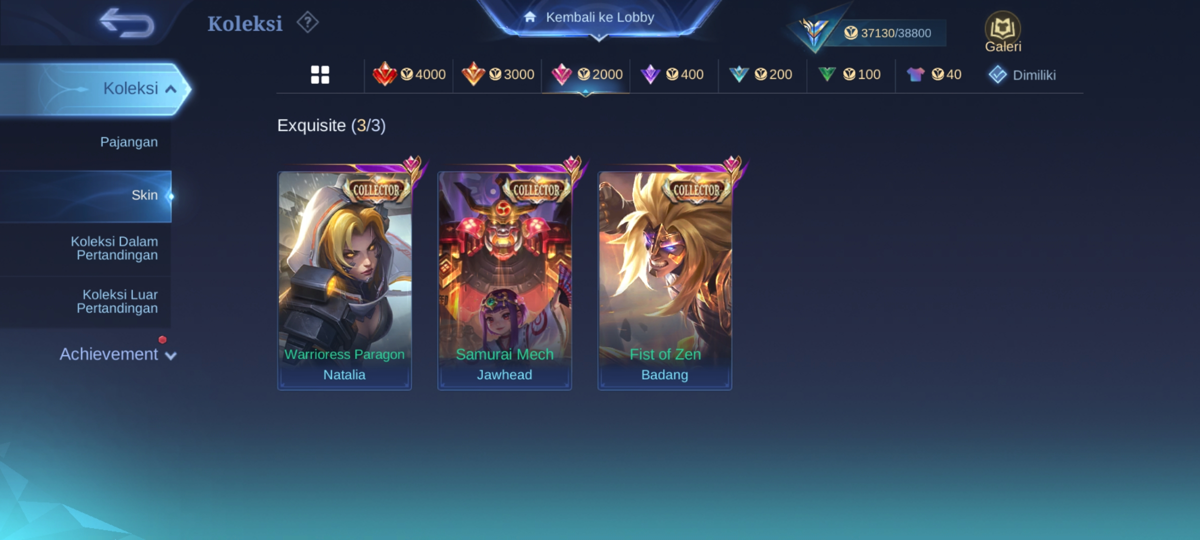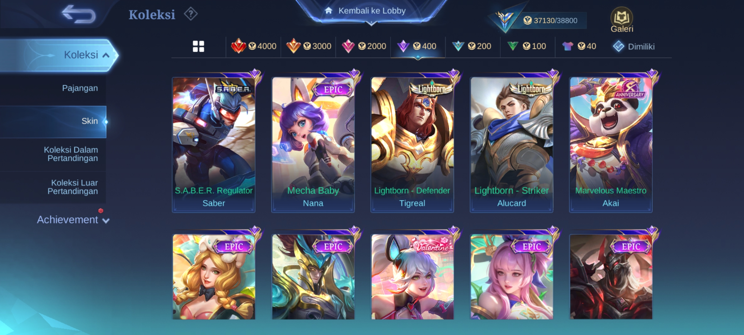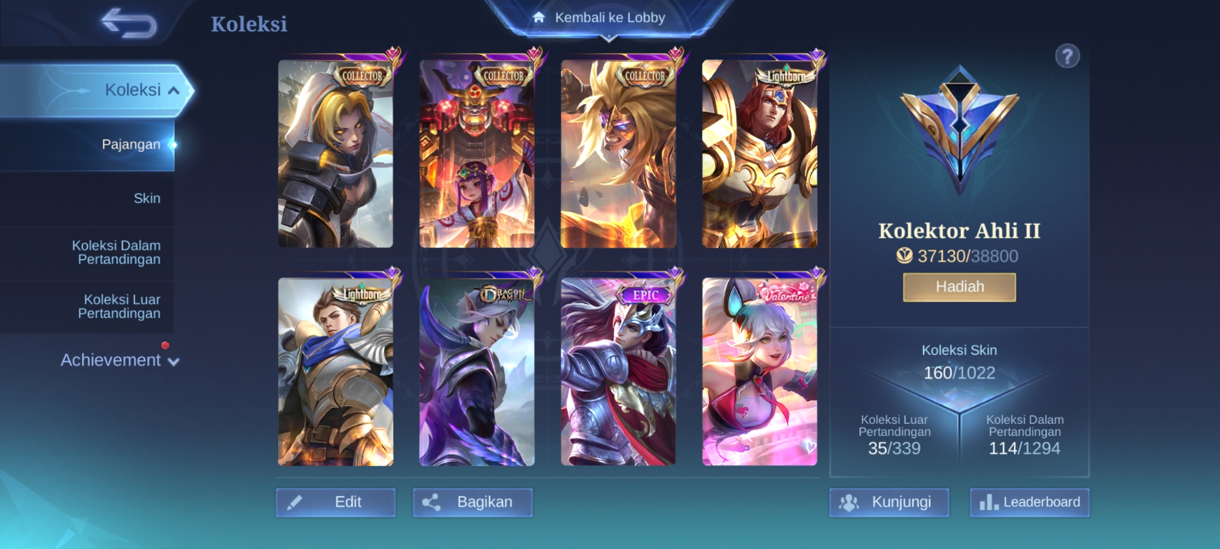 ML-187 Skins 160 [ Collector Badang x Collector Jawhead ] Lightborn Alucard x Tigerial / Recall Epic limit