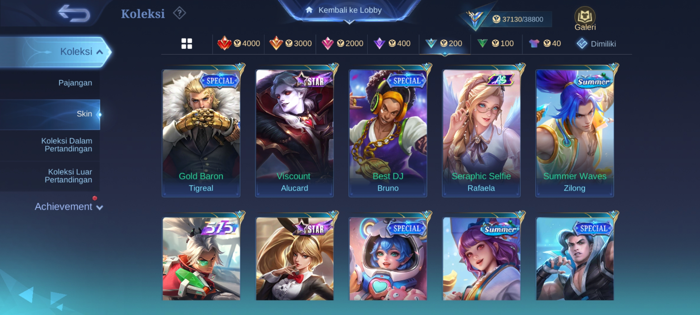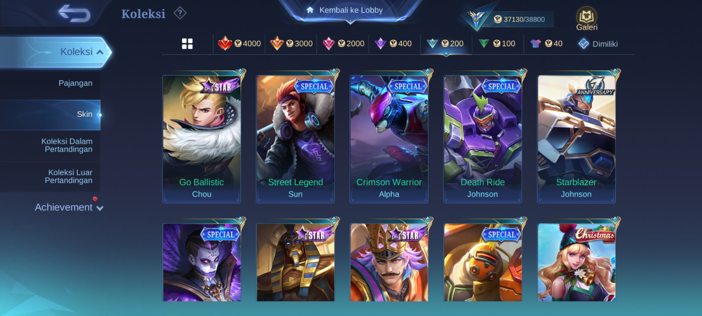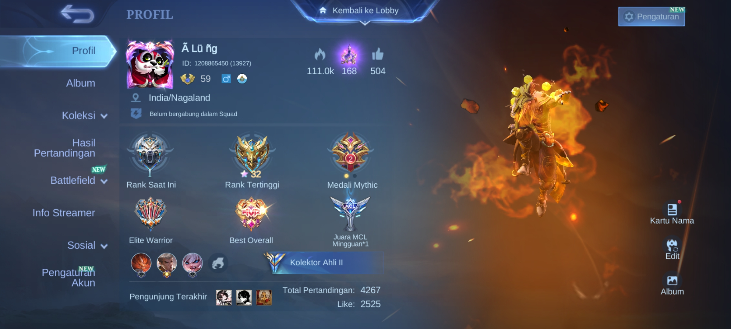 ML-187 Skins 160 [ Collector Badang x Collector Jawhead ] Lightborn Alucard x Tigerial / Recall Epic limit