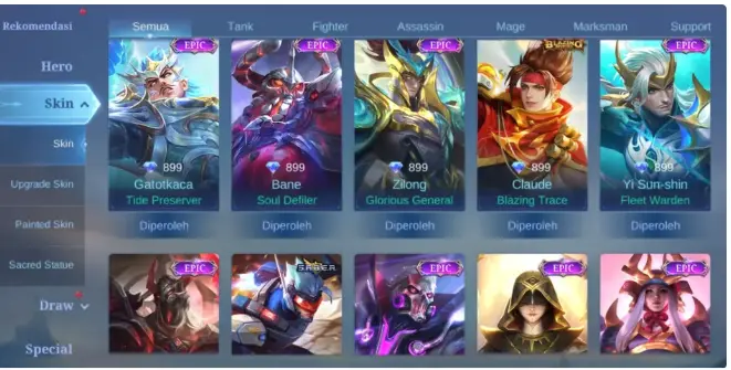 ML445 // 210 Skins, 129 Heroes, Epic 5 Rank, 48% Winrate