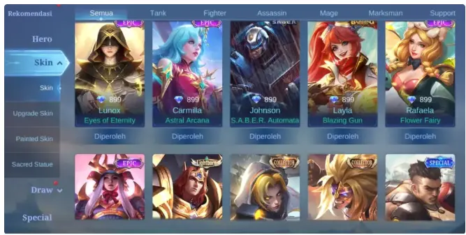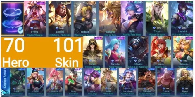 ML451 //101 Skins, 70 Heroes, Epic 5 Rank, 52% Winrate