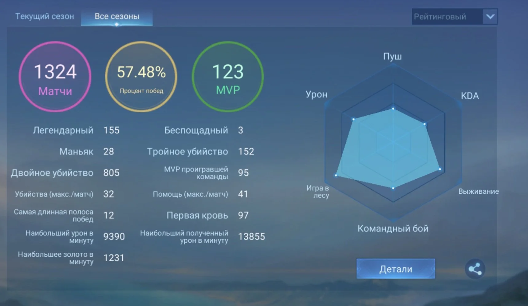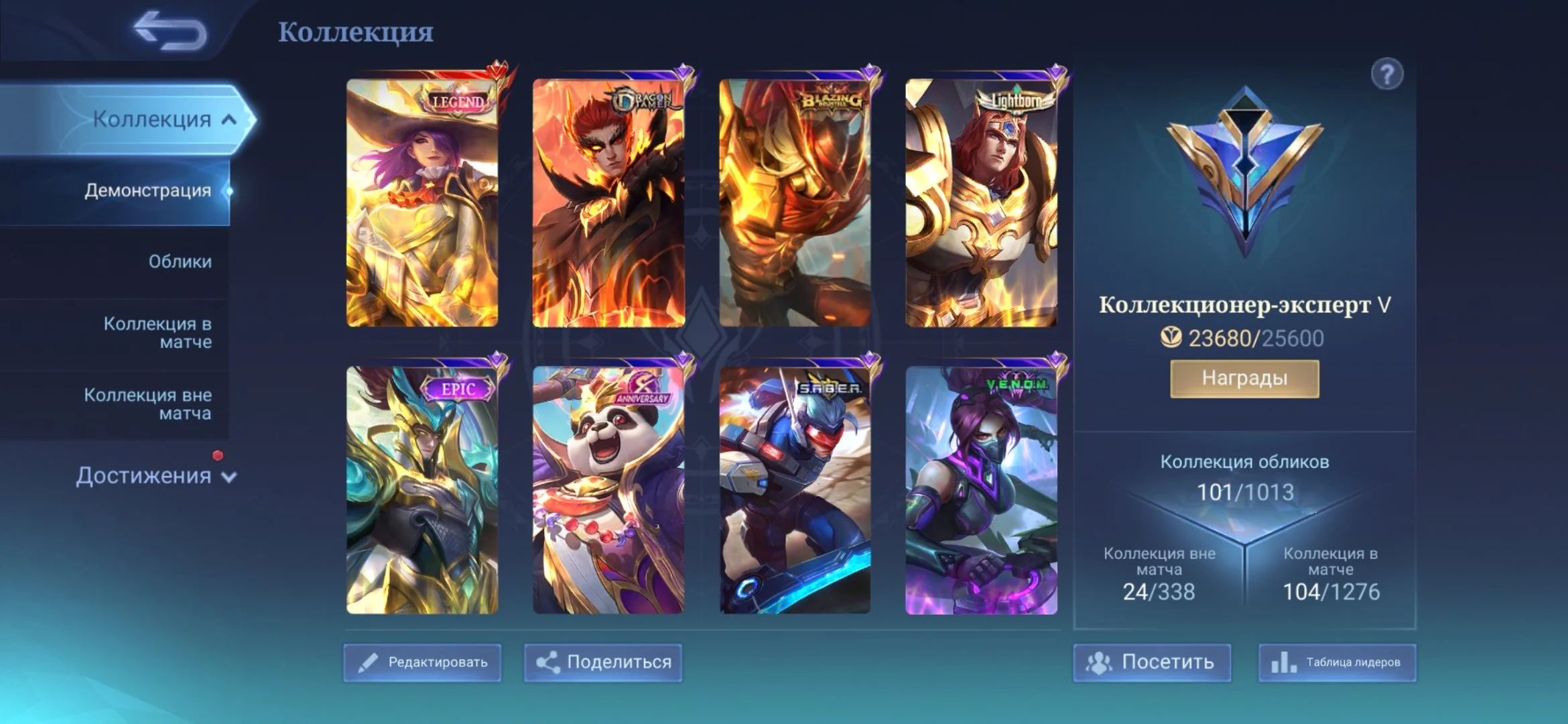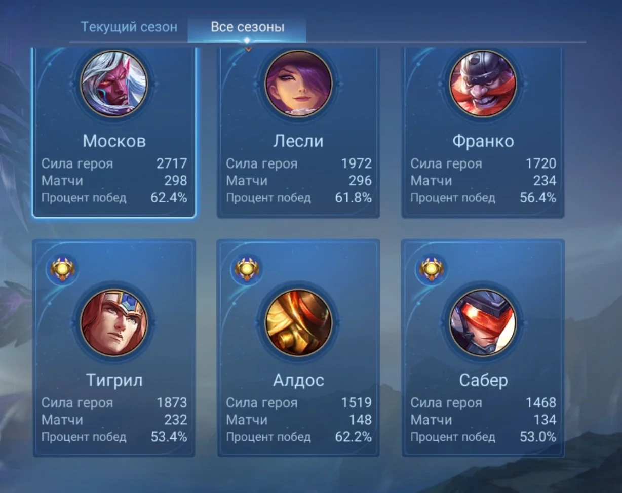 ML494 //Epic Rank, Legendary Leslie Main, 101 Skins, 57% Winrate, 78 Heroes, Level 46, Perpetual Guarantee