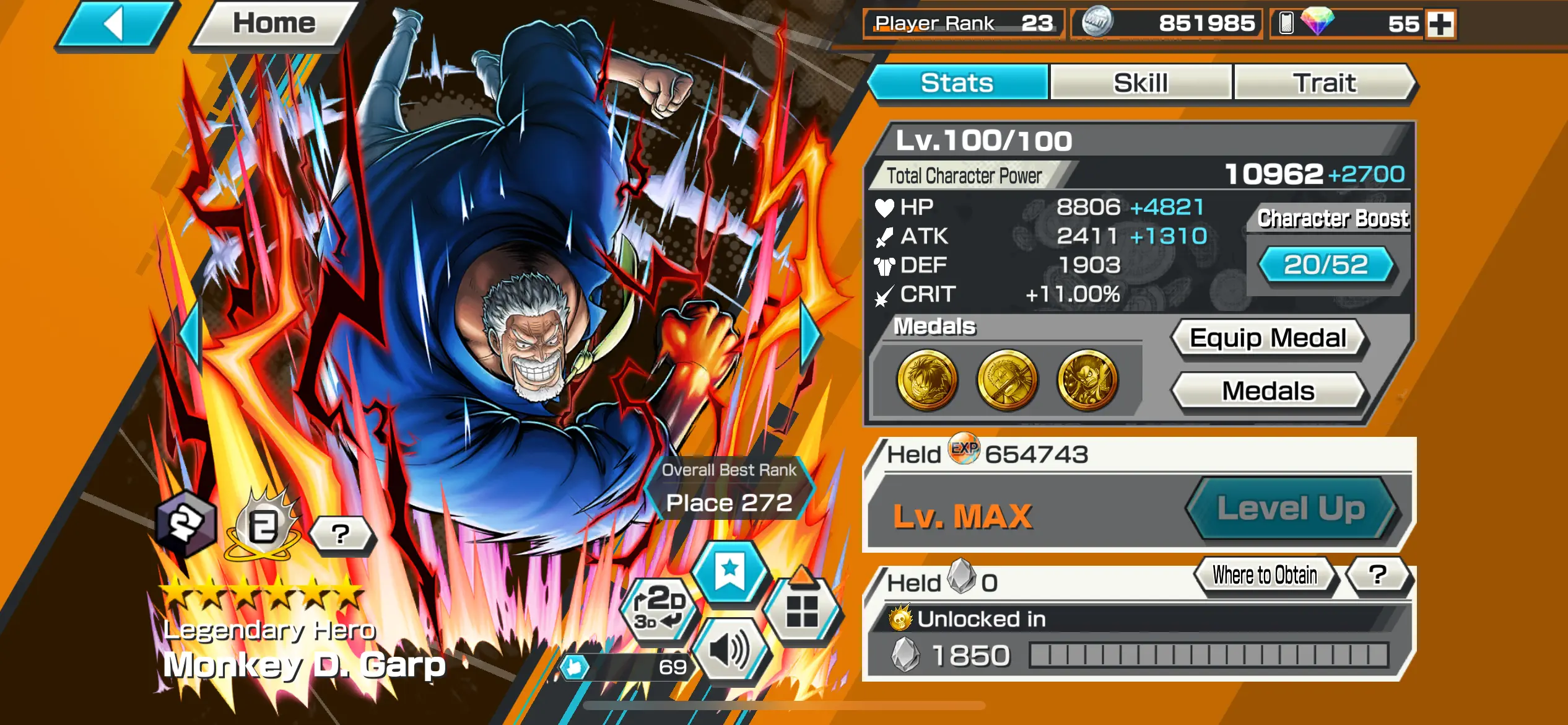 B163đ„6 Ex Meta 2 Maxđ„Garp Maxđ„Roger Maxđ„Rob Lucciđ„Luffyđ„Ssnakeđ„Yamatođ„Support 137đ€Good MedalđïžMany Medal Materialđ„iOS & Android