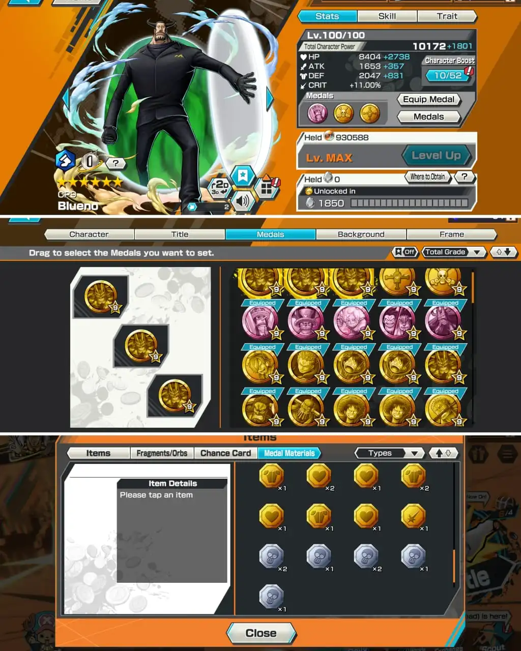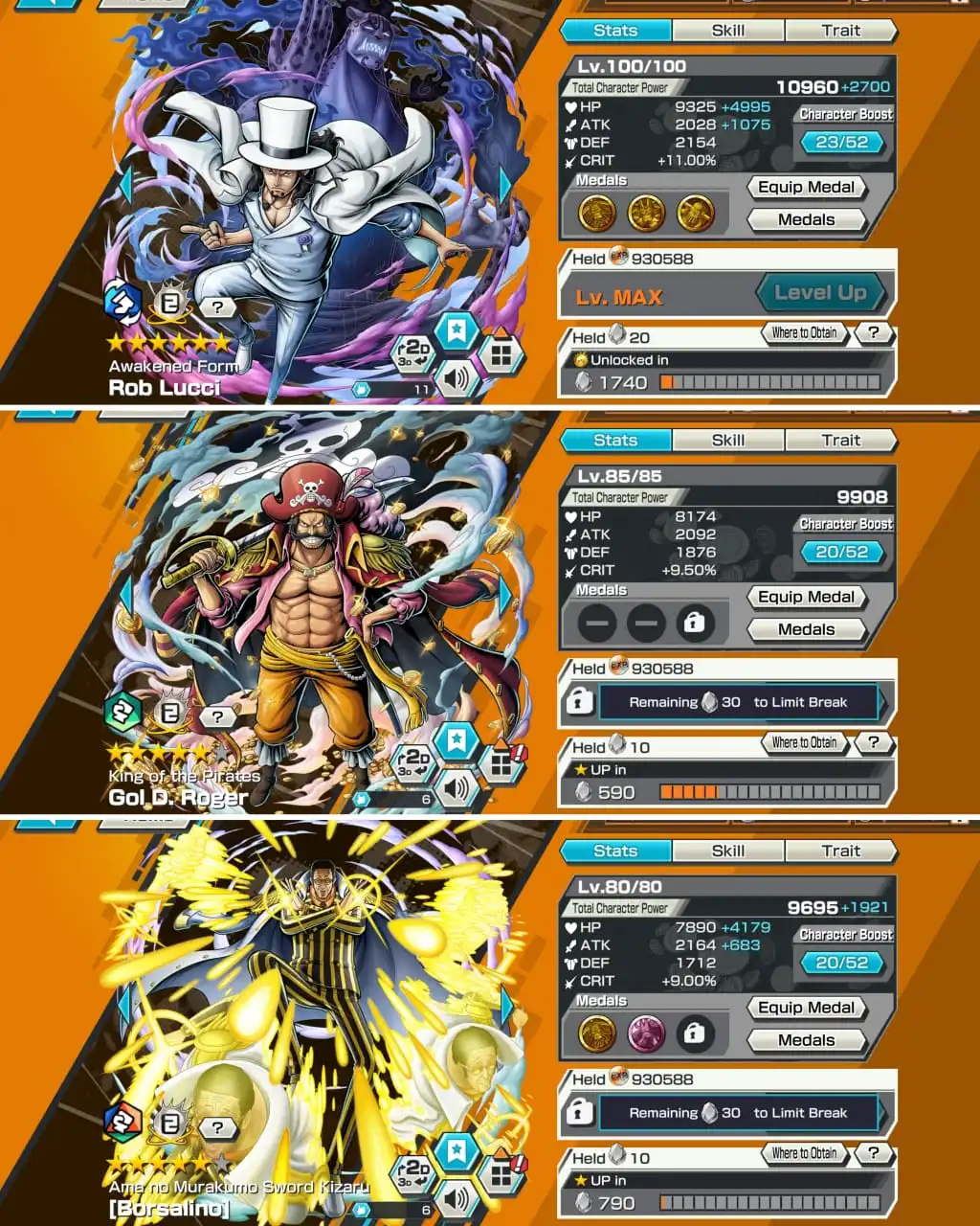 OP210✨6EX 1MAX✨LUCCI MAX✨KIZARU✨ROGER✨KAIDO✨KUZAN✨S-SNAKE✨SUPPORT 135%✨JABRA+KAKU+BLUENO+ULTI MAX✨GOOD MEDALS✨MANY CHARACTER✨ANDROID/IOS