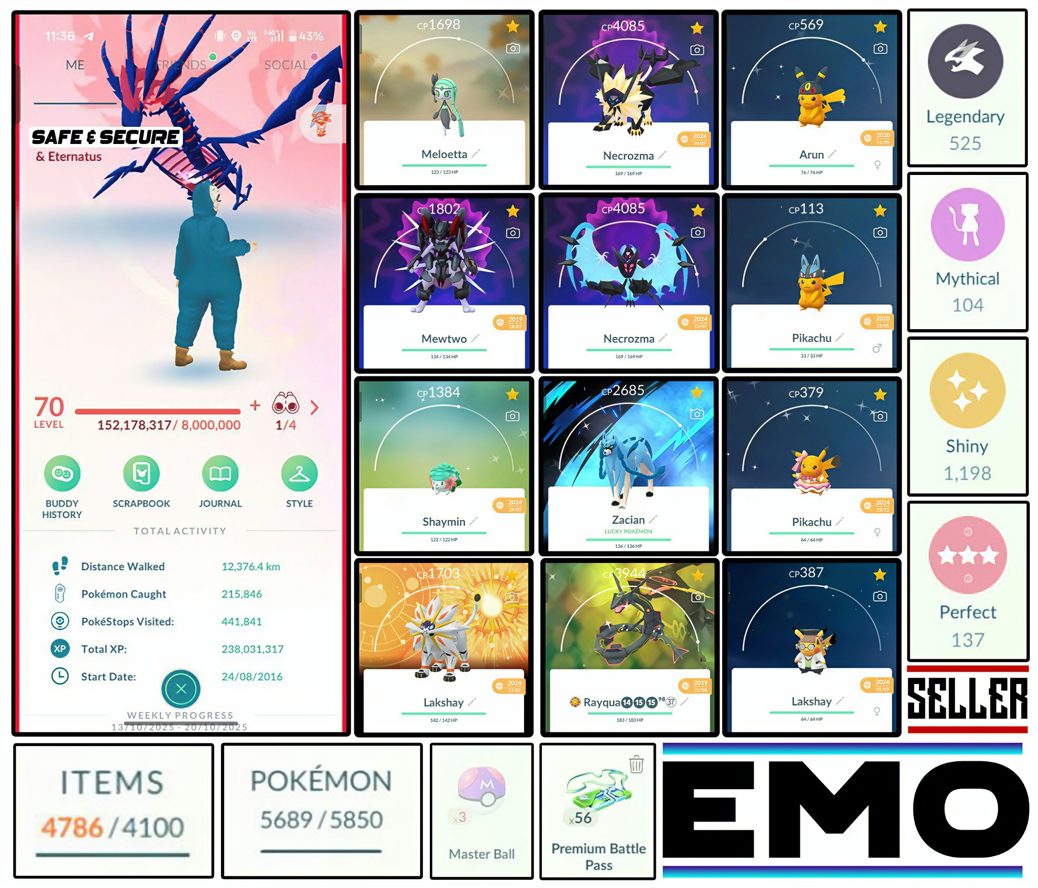Level 70 Ultra Rare 2016 đïž 5600+ Pokemons đ 56 Premium Passes đ Collectors Dream đ„ PowerHouse Rare Flex đ„ Top Meta PvP + PvE