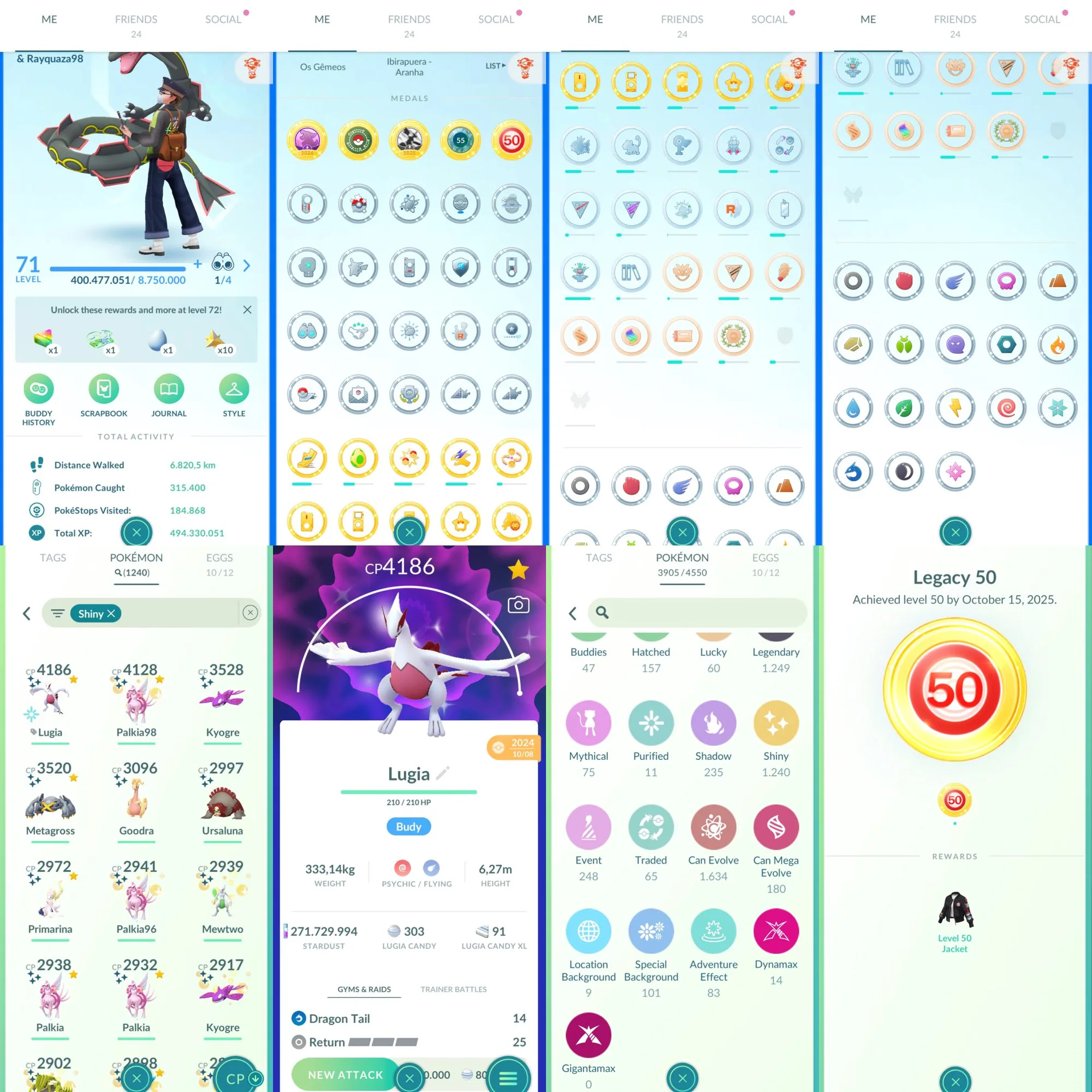 Level 71-37 legend iv100-555 pass-7186 Coins-Shundo Lugia-5 Shundo Legend-271m+ Stardust-1307 legend-1237 shiny-1003 Hundo-494m+ XP-248 costume- 38 medal