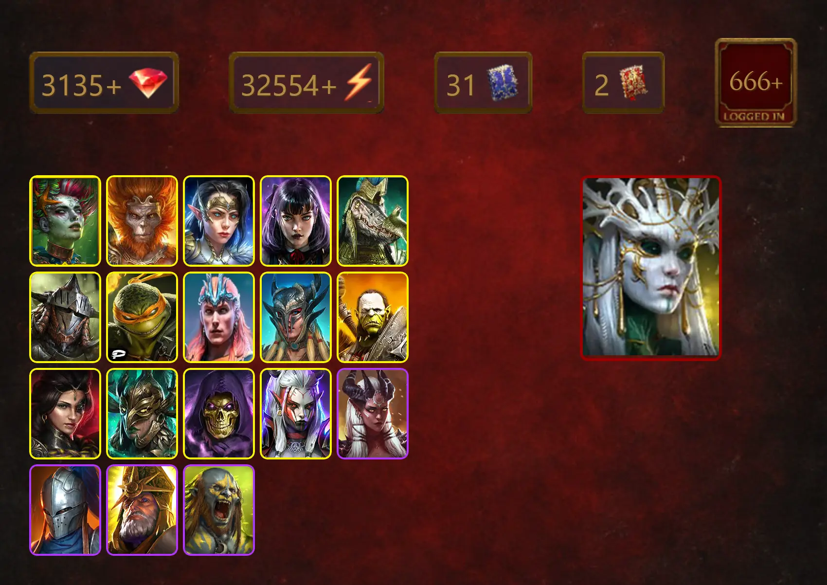 [STARTER]Arbais+Pheidi Tealcrest+Morrigaine+Wukong+Supreme Elhain+Alice+Rathalos+Michelangelo+Loki+Scyl+Artak+Adelyn+30Epics