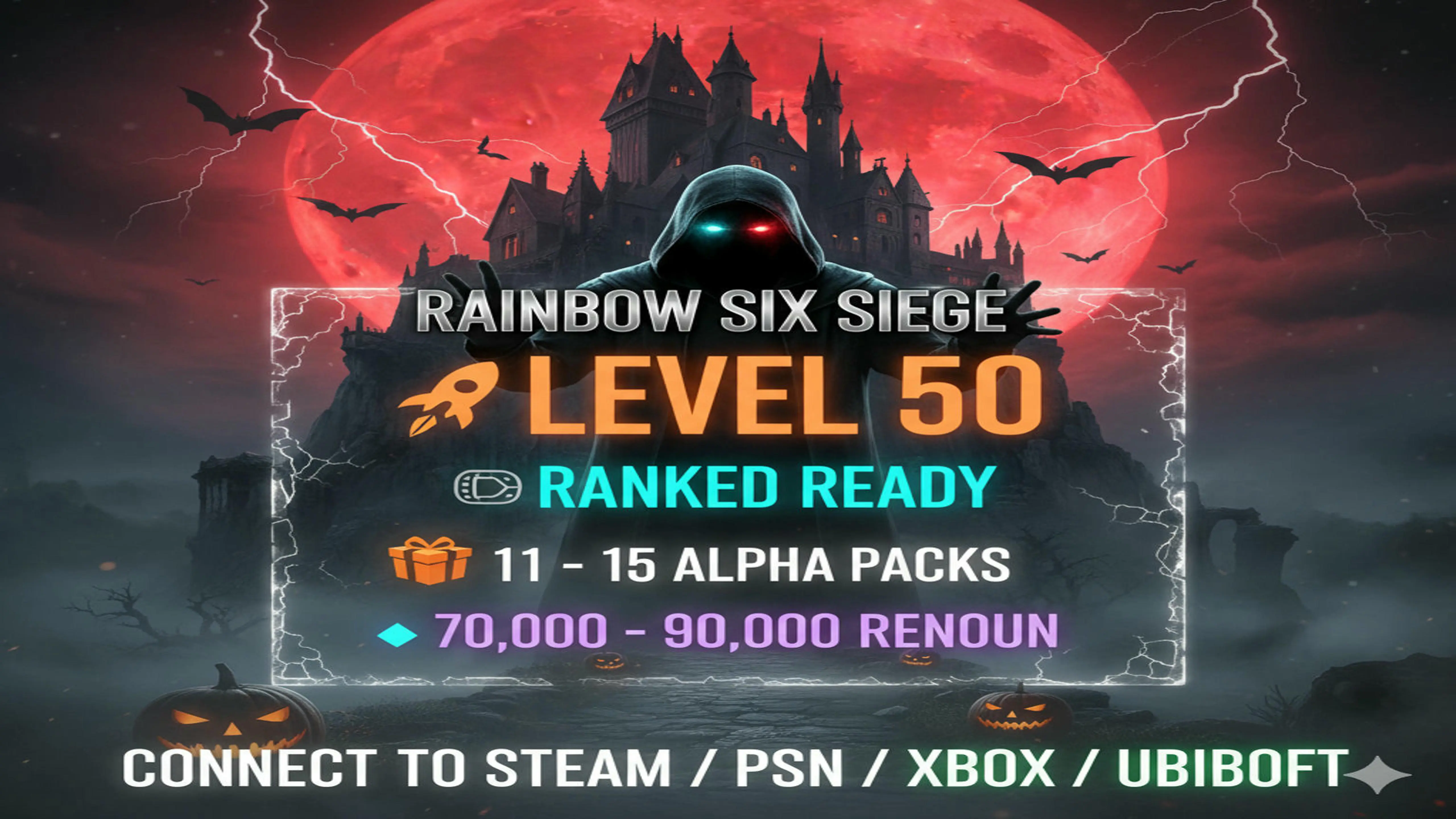 🔹Ban-Proof🔹 Level 50 🚀 Ranked Ready 🎮 11 ⸱ 15 Alpha Packs 🎁 70,000 ⸱ 90,000 Renown 🔹 Connect to Steam / PSN / Xbox / Ubisoft 🔹 Full Access 🔹 13 Champions #cIa6Ij