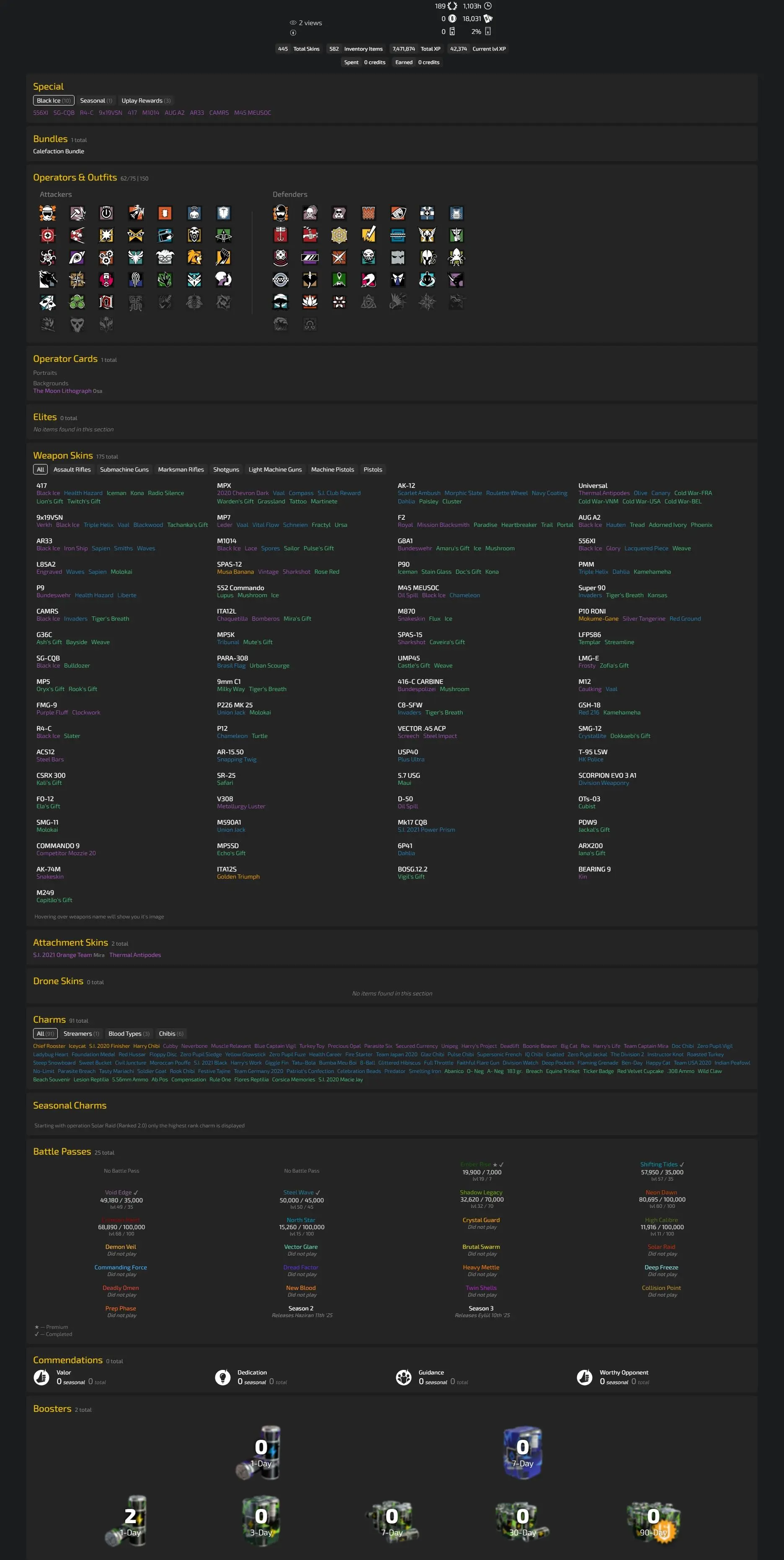 PC|PSN|XBOX [ Level 189 ] 10 Black Ice / 1 Seasonal ⚡ 60 Operators 18031 Renown ✅ Full Access
