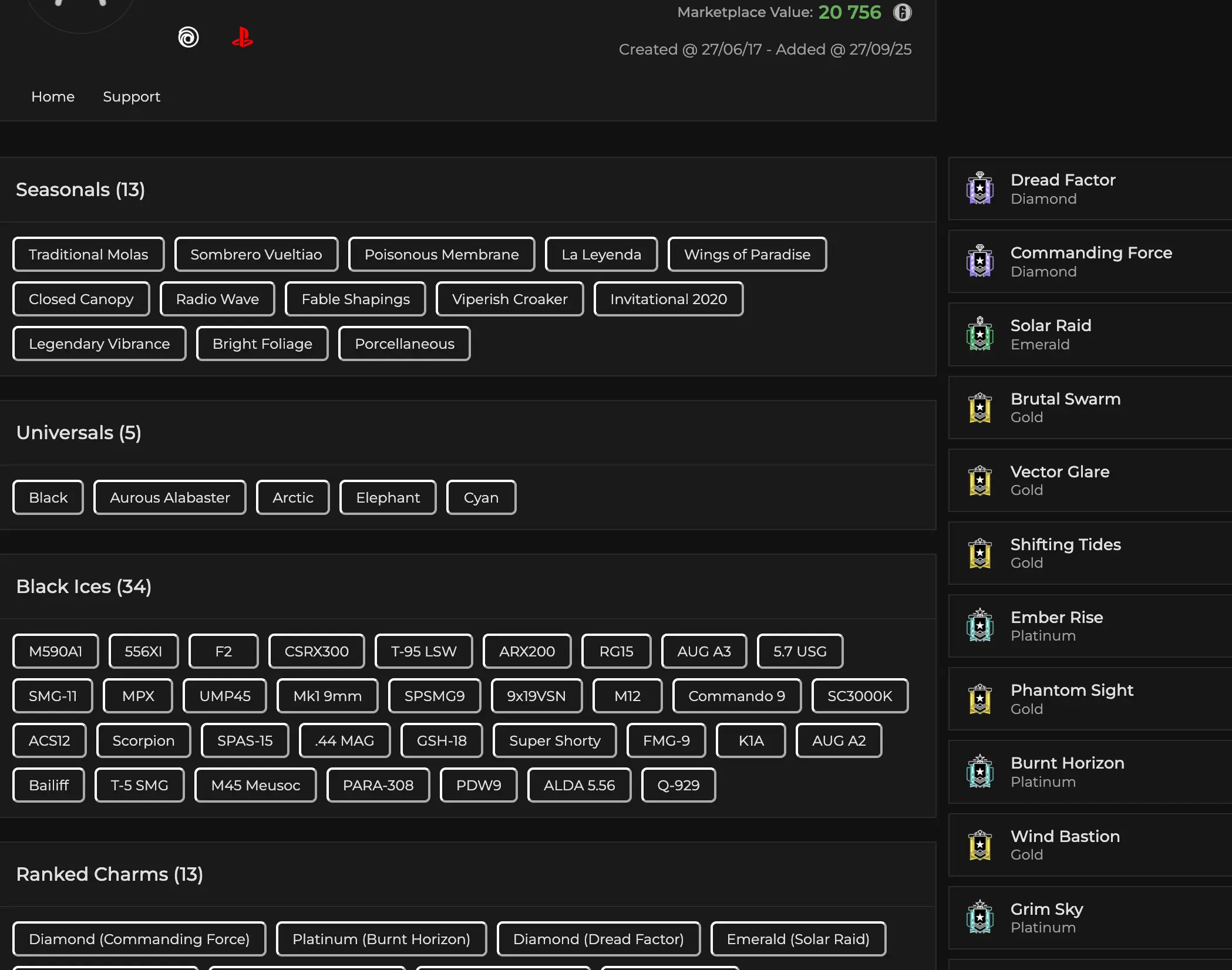 💮 [PC/XBOX] Ranked Ready | Level 195 | 2x DIAMOND ( Commanding Force, Dread Factor ) 34x Black ice | 13x Seasonal | 5x Universal | 22x Legendary Skins | Emerald | 68 Operators | 86,872 Renown 💰