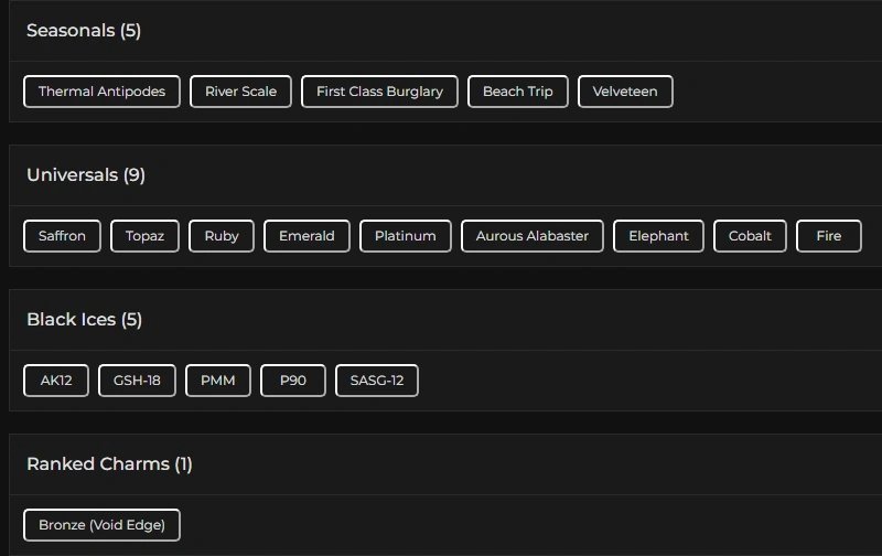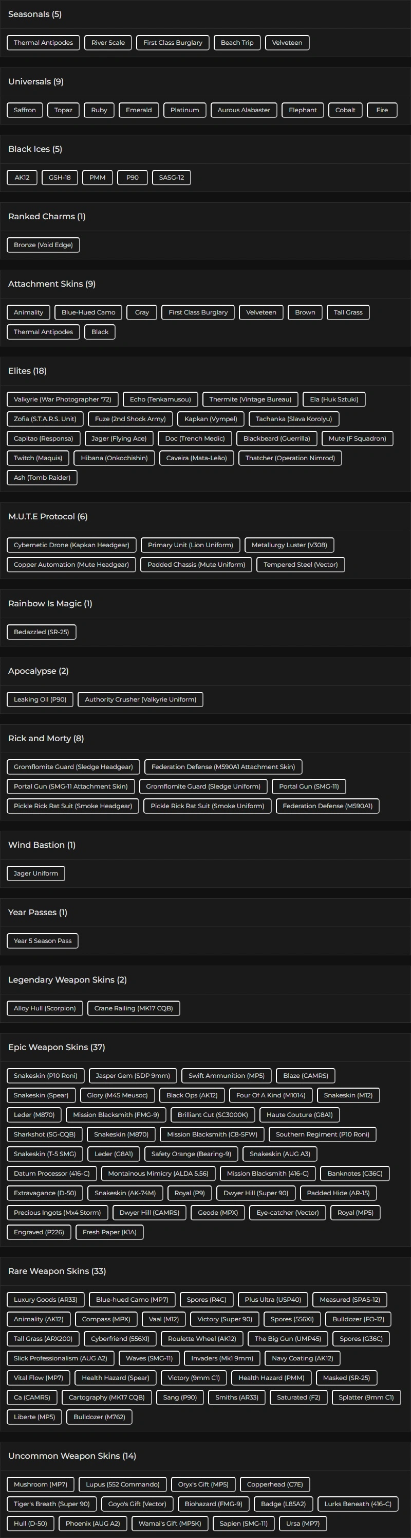 62 Operators 5x Black Ice 9 Universal Skins 18 Elite 8401 Renown Full Access â