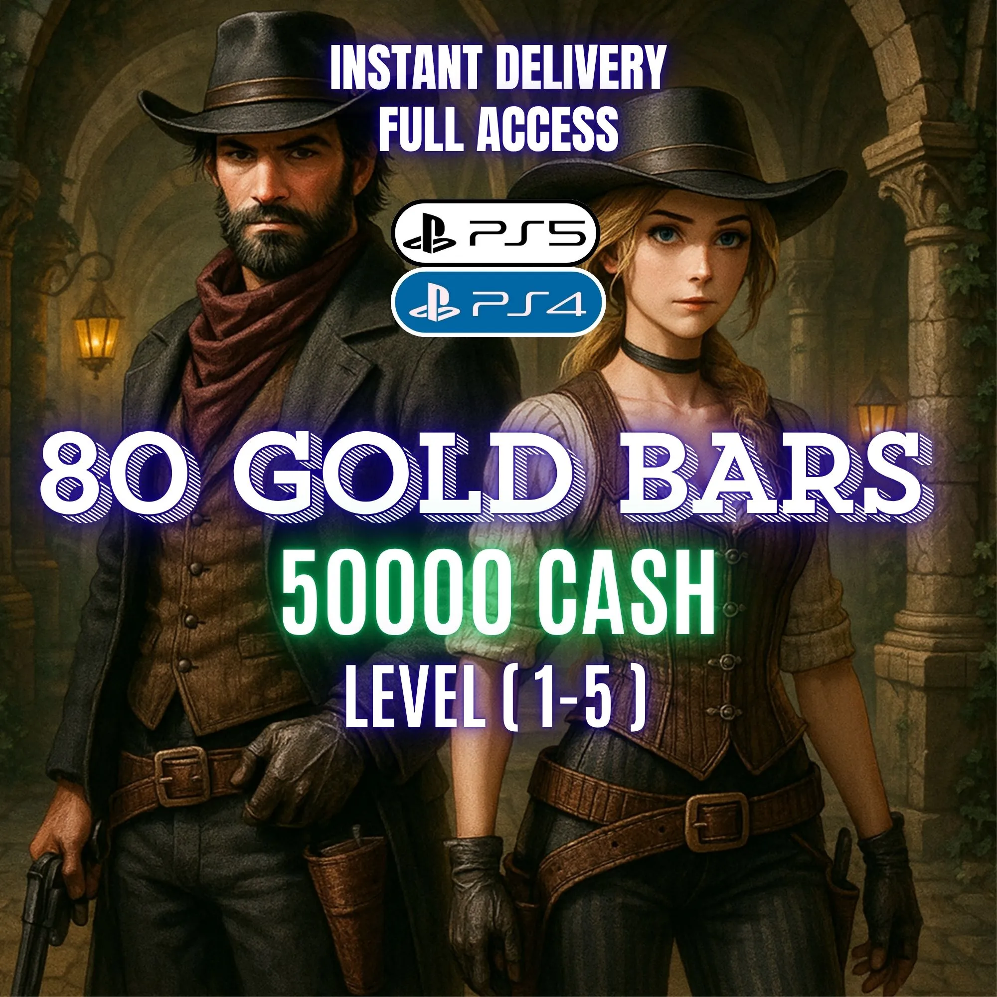 🗡️ [PS4 | PS5] Red Dead Online Premium Account 🎯 80 Gold Bars + $50,000 Cash | Level (1–5) | Full Access | Instant Delivery | RDA17