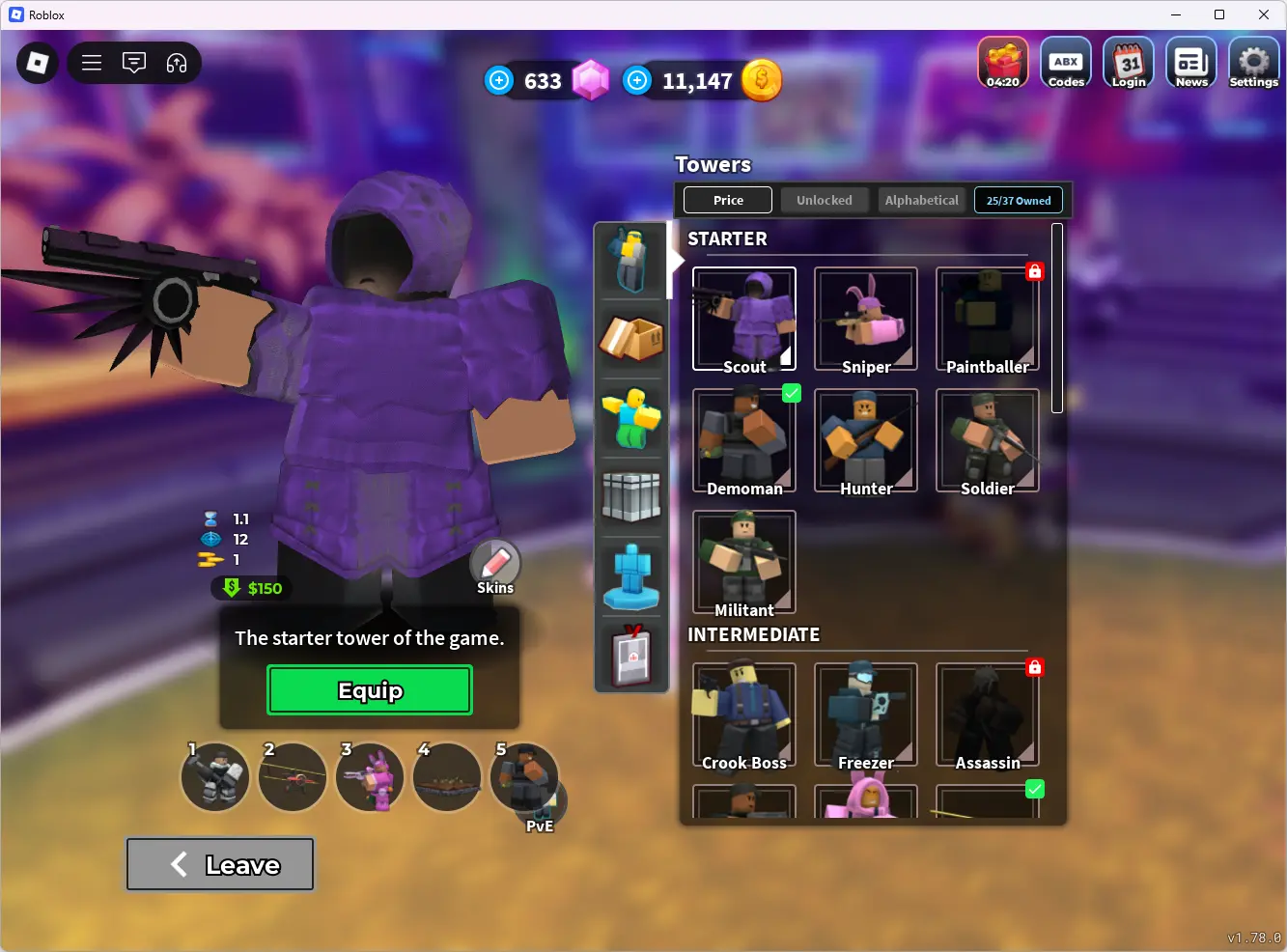 ❤️Tower Defense Simulator ❤️ 63 lvl ❤️ 11K coins ❤️ 633 gems ❤️ 25/37 towers ❤️ Inventory value 4028 ❤️  Limited: Brainfreeze Egg ❤️ Eggmunition ❤️