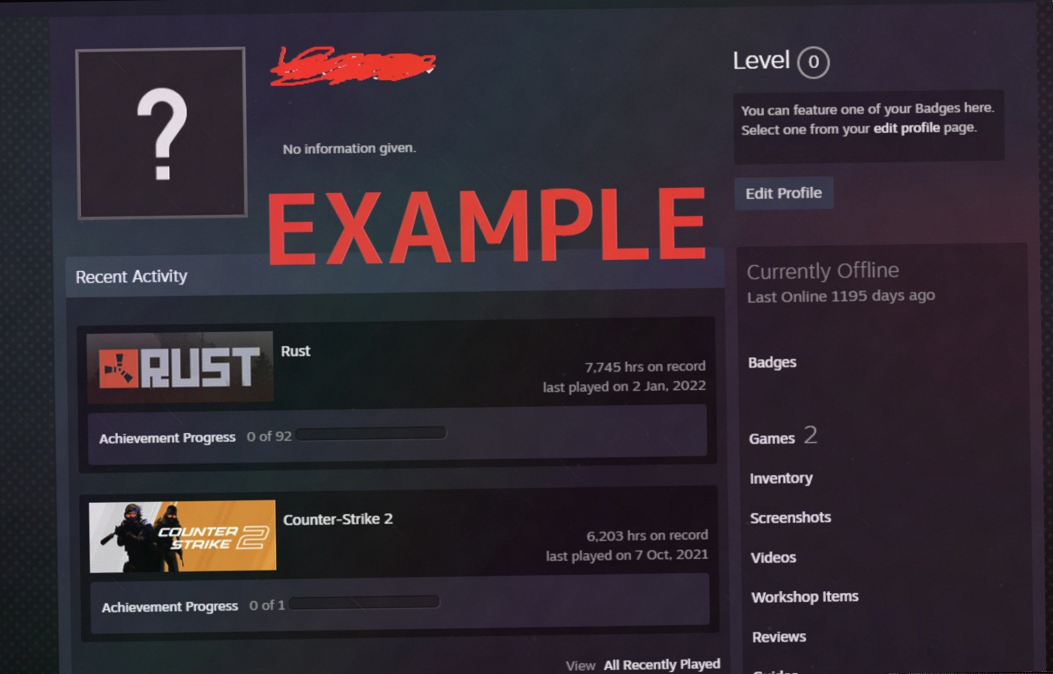 "7000+ Idle HOURS RUST+CS2 (NOT Prime) ⸱ 6000+ Idle Hours+Full Access+Original Email+Instant Delivery 24/7