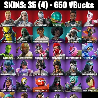 35 skins [PC/PSN/XBOX] 🧢 Captain Jones 💎 Emma Frost 🤖 War Machine 🎩 Mysterio 💠 Shuri 🎭 Gwenpool 🍌 Peelverine 😈 Doom 🚀 AGCFN174