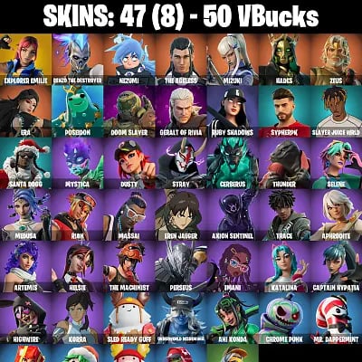 47 skins [PC/PSN/XBOX] 🌪️ Renzo the Destroyer 🌀 Nezumi 🔥 The Ageless 🌸 Mizuki 🔥 Hades ⚡ Zeus 🌊 Poseidon 💀 Doom Slayer 🚀 AGCFN162