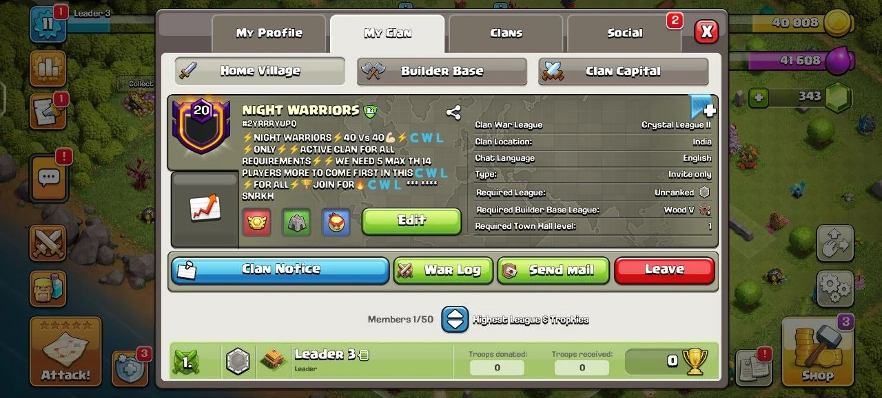 NIGHT WARRIORS💎LEVEL 20💎ENGLISH NAME 💎 CAPITAL 10 💎LEAGUE CRYSTAL 2 💎 CAPITAL TROPS ALMOST MAX 💎 BEST💎DEAL