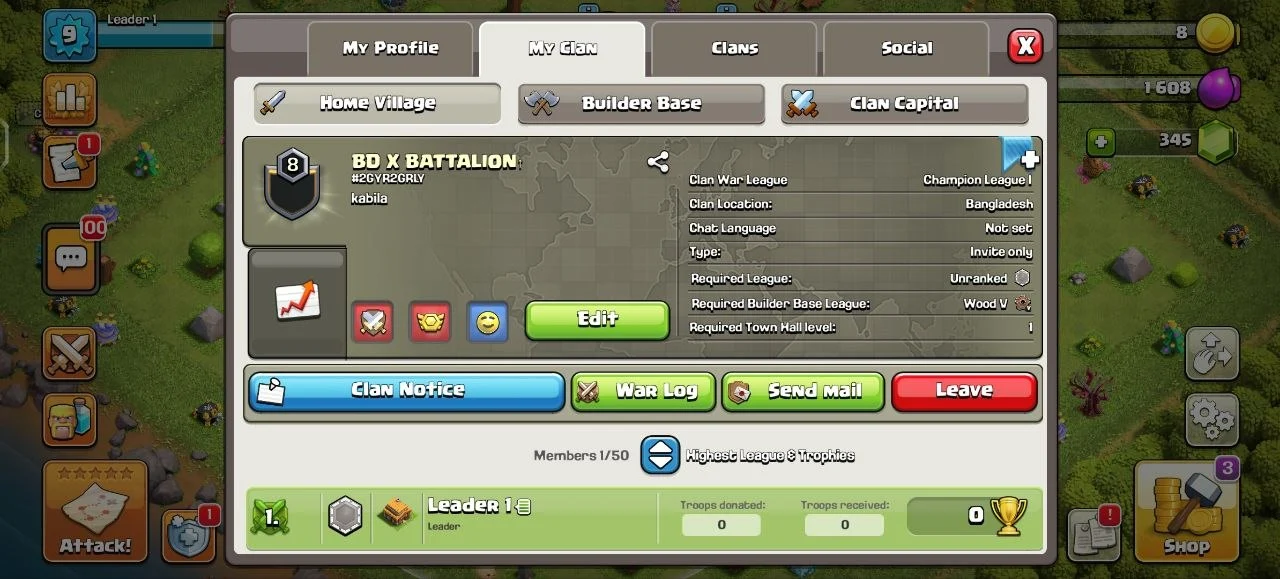 Level 25 💎Win Streak 10💎 Name Single Word 💎War Win 583 Lost 133 💎 4/1 War Log 💎 League Crystals 💎 Capital 9