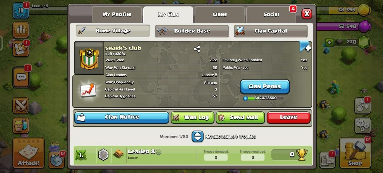 War Win Streak 56 🔥 Level 18 🔥Shark's Club🔥 War Log 5/1 🔥League Master 2 🔥 War Win 322 Lost 67 🔥 Best🔥Deal