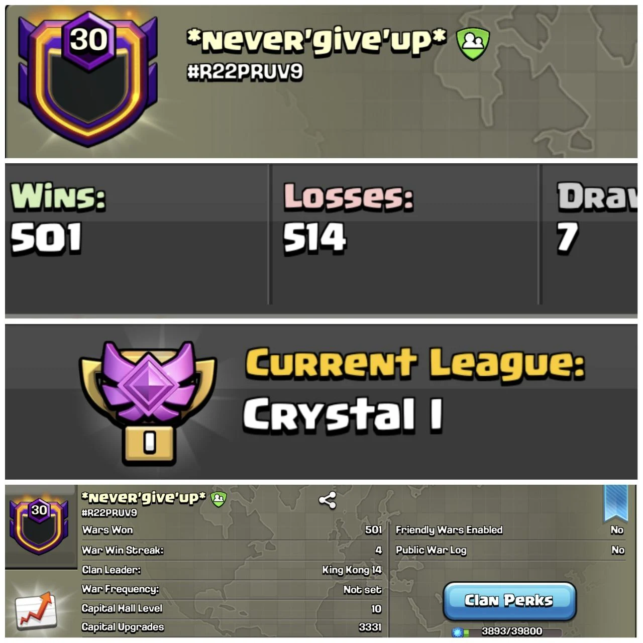 Level 30 🔴 never give up🔴 Superb Name 🔴 Clan Capital 10 🔴 Crystal League 🔴 Fast Delivery Unless Sleeping