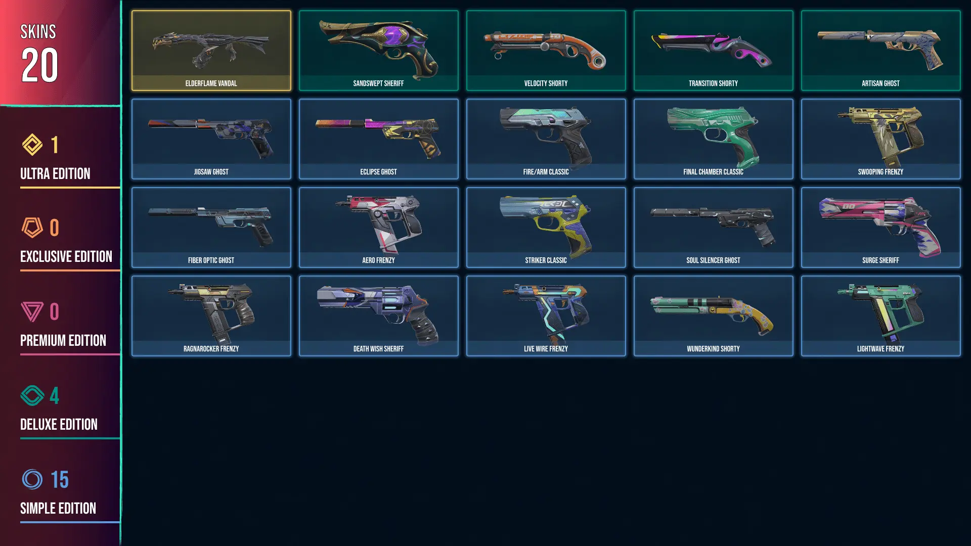 🥑 AP 🥑 20 SKINS 🥑 VALUE: 2475 VP 🥑 Elderflame Vandal 🥑 Sandswept Sheriff 🥑 Velocity Shorty 🥑 Transition Shorty 🥑 Artisan Ghost 🥑 Aero Frenzy 🥑 RANKED READY 🥑 318 LEVEL 🥑 INSTANT DELIVERY 🥑 FULL ACCESS 🥑 FeBrq 🥑